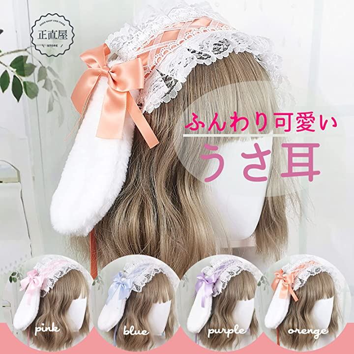 カチューシャ ヘッドドレス うさぎ 耳 髪飾り ロリータ うさ耳 コスプレ リボン
