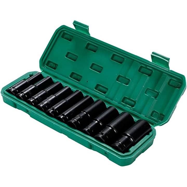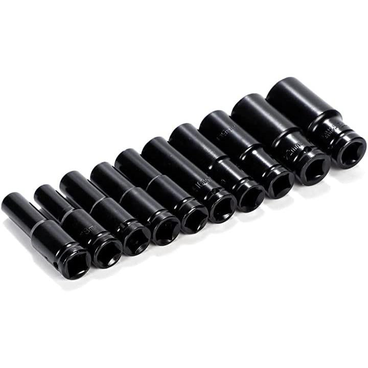 ディープソケット レンチ インパクト 六角軸 工具 DIY 1/2インチ 12.7mm 10本セット 収納ケース付き 差込角 ロングソケット