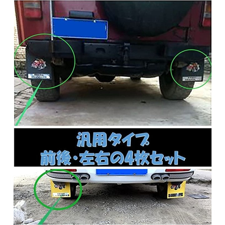 4枚セットで、前後左右のタイヤをしっかりカバー。汎用タイプの泥除けで、様々な車種に対応でき、愛車のドレスアップにも最適です。