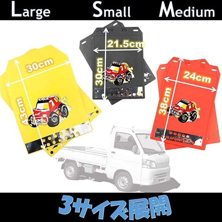 ・「セット内容」マッドガード x 4 *ボルト・ナットは別売り 「サイズ」大:約43x30cm、中:約38x24cm、小:約29x22cm 「素材」EVA樹脂