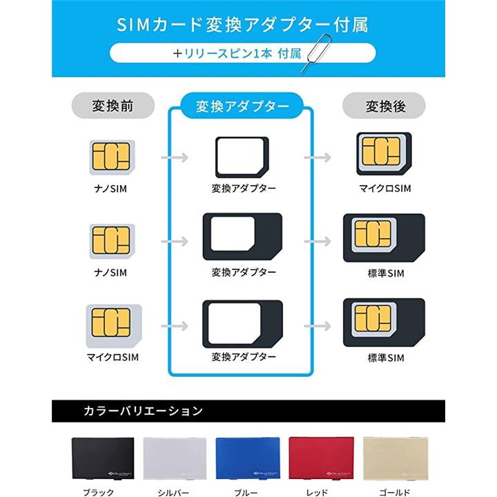 BLUECRAFT SIM・SDカード 収納ケース アルミ両面タイプ 最大21枚収納 nanoSIM12枚 SD1枚 microSD8枚 SIM変換アダプタ 取出ピン付属
