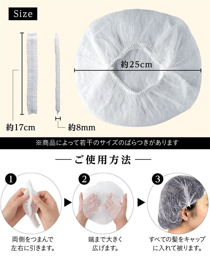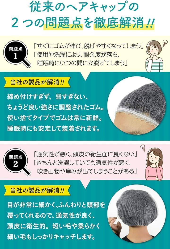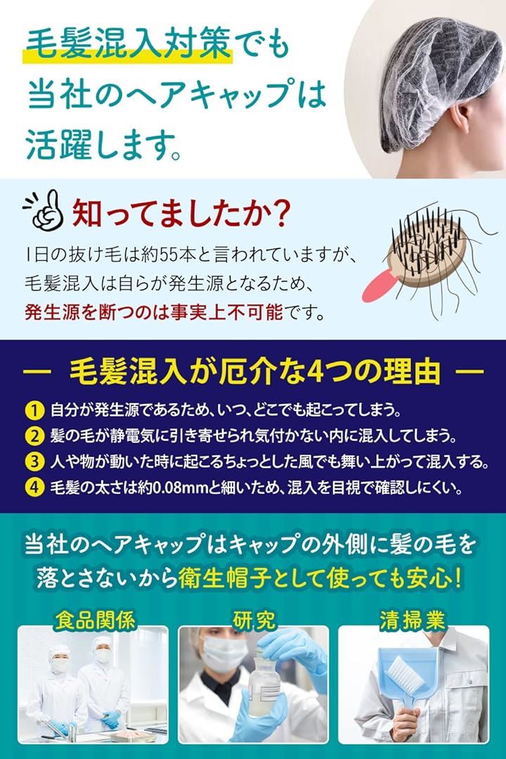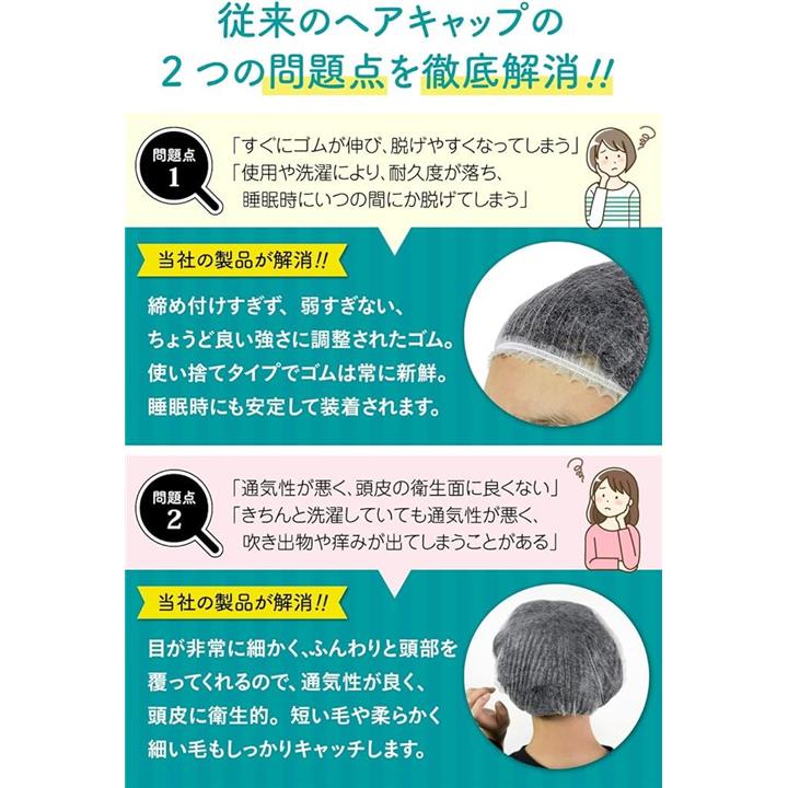 看護師監修使い捨てヘアキャップ国内検査機関合格だから過敏体質の方も安心 衛生キャップ 不織布キャップ 100枚入り インナーキャップ