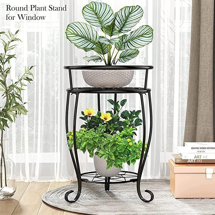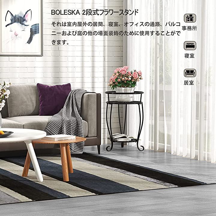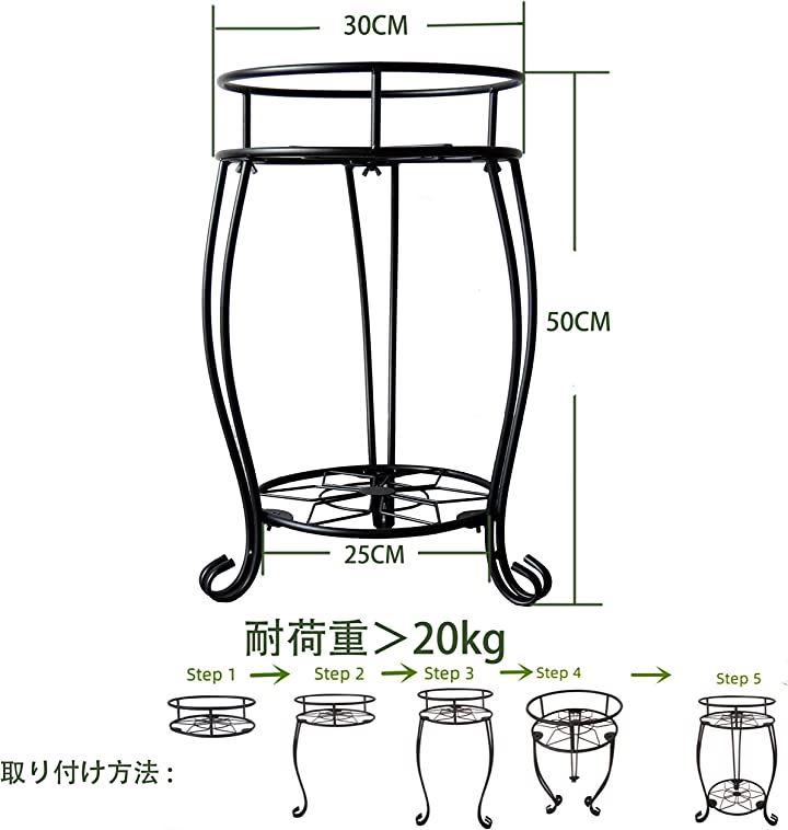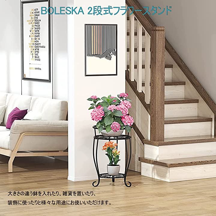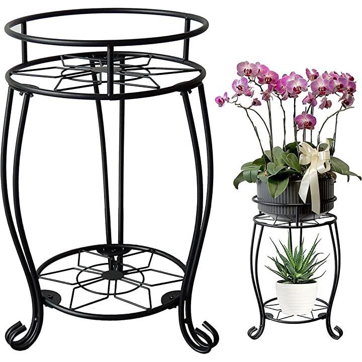 フラワースタンド 2段 花台 アイアン 観葉植物 家装飾 室内 屋外 プランタースタンド フラワーラック 植木鉢台 取り付け簡単 園芸ラック
