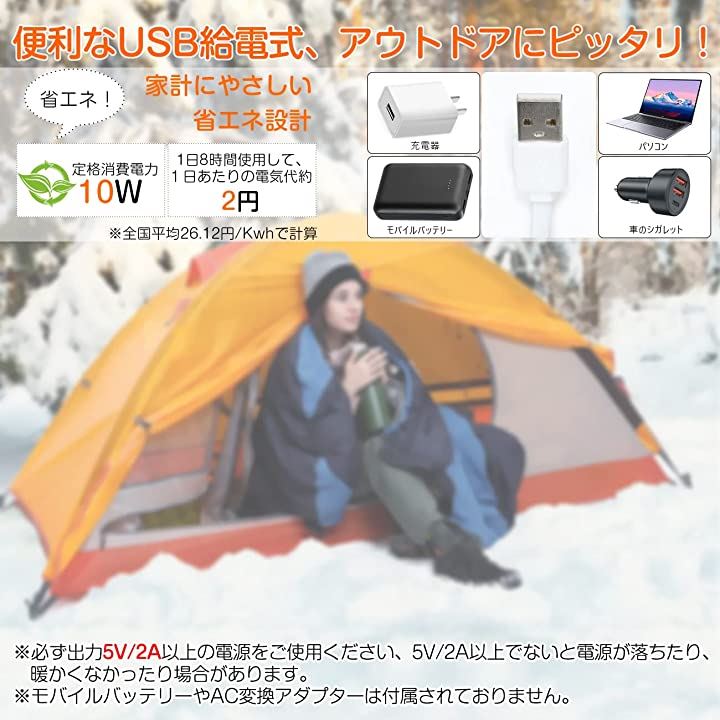 Makitsu 寝袋用USB電熱パッド、シュラフ内に入れてすぐ体全体をポカポカ、冬キャンプに欠かせないアイテム。