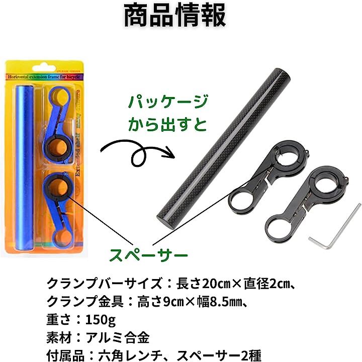 マウントステー マルチバー バイク 自転車 クランプバー ハンドル スマホホルダー ロングバー 径 22mm スペーサー付き 取り付け 簡単