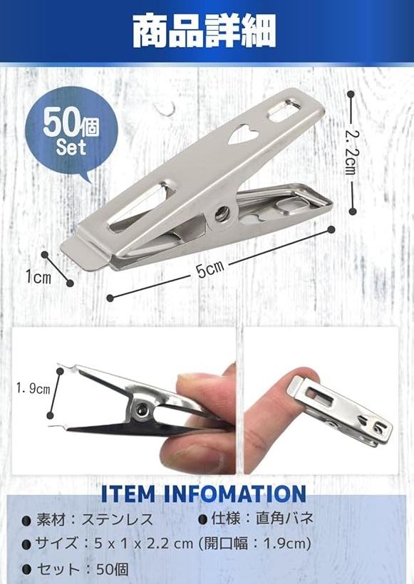洗濯ばさみ ステンレス 小型 クリップ ピンチ ミニ 小さ目 多用途 50個セット