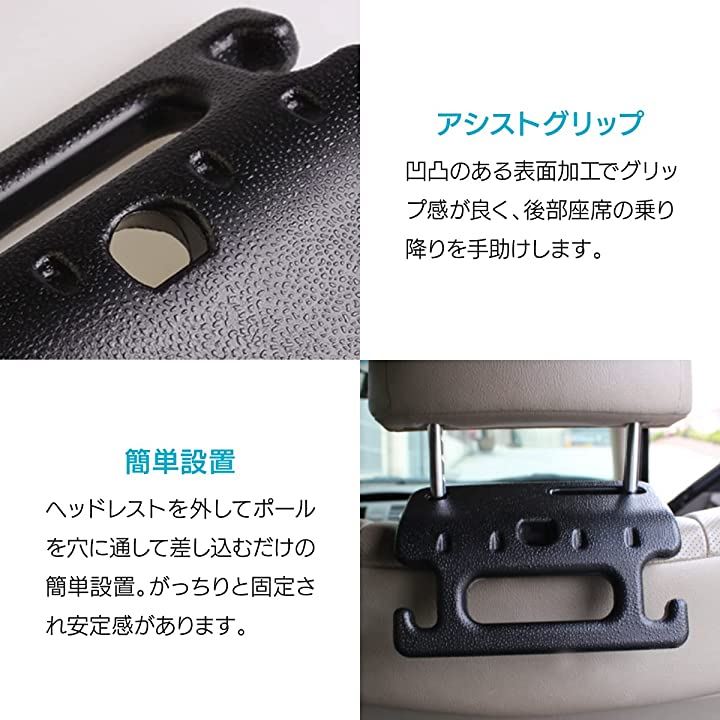 車 後部座席 手すり フック グリップ 持ち手 ヘッドレスト取付 2個セット
