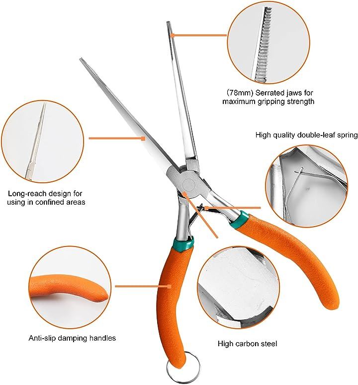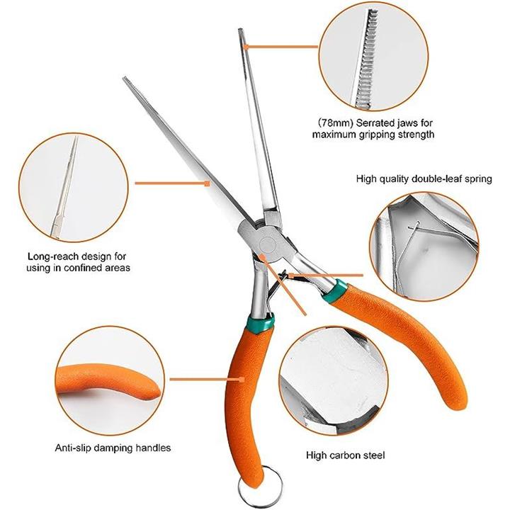 ロング先細ラジオペンチ 先長ラジオペンチ ギザ付 マイクロラジオペンチ 185mm 曲げハンドル ロングタイプ