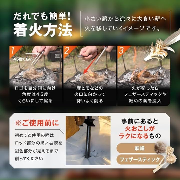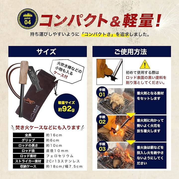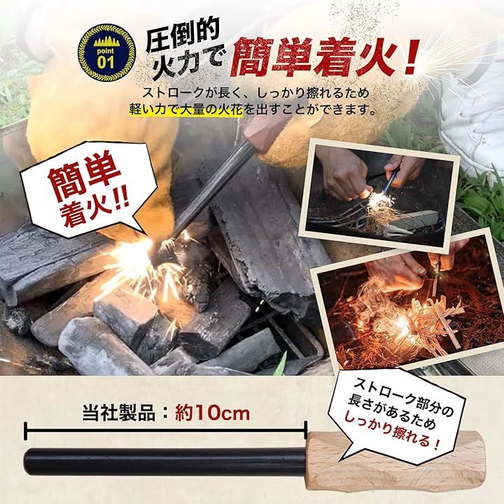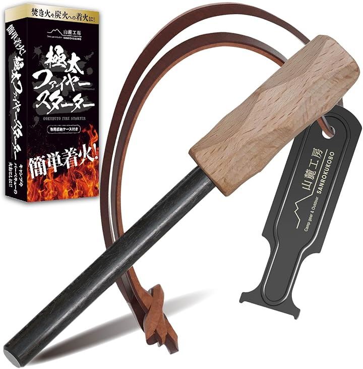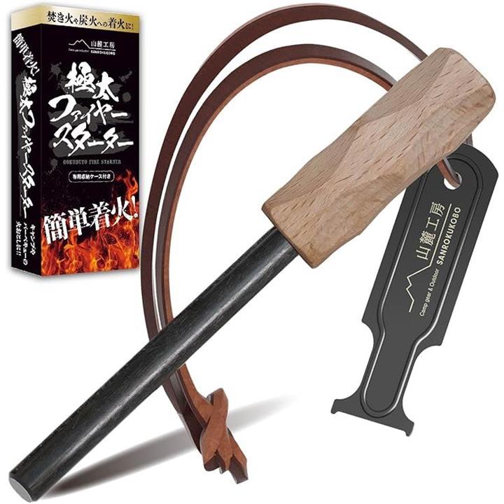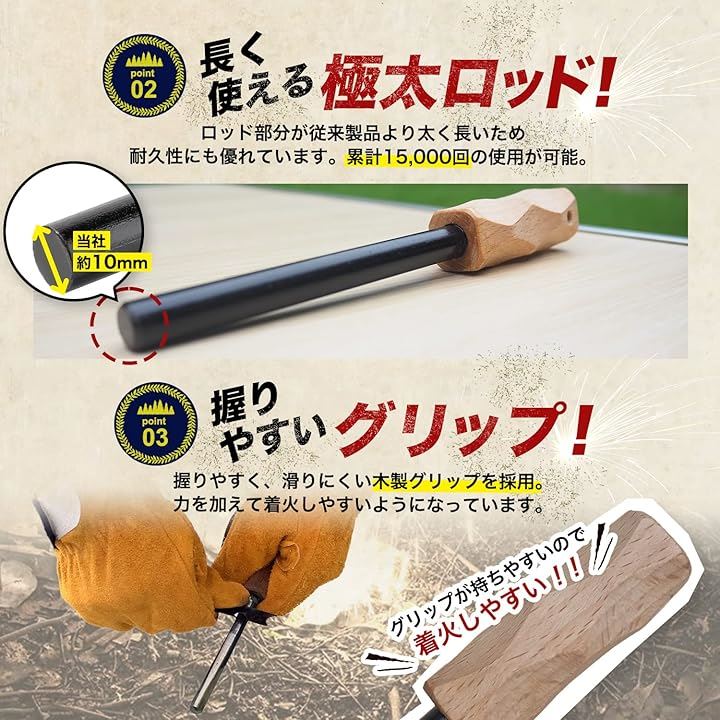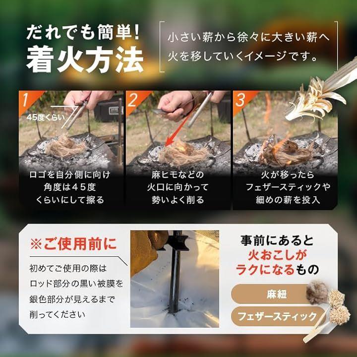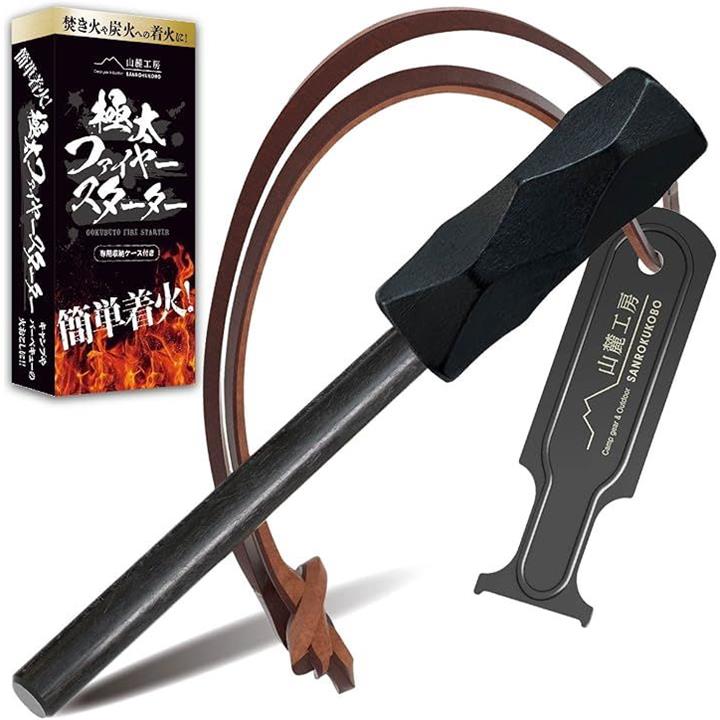 極太 ファイヤースターター 簡単着火 フェロセリウム 収納ケース付き 火打ち石 キャンプ BBQ 火起こし