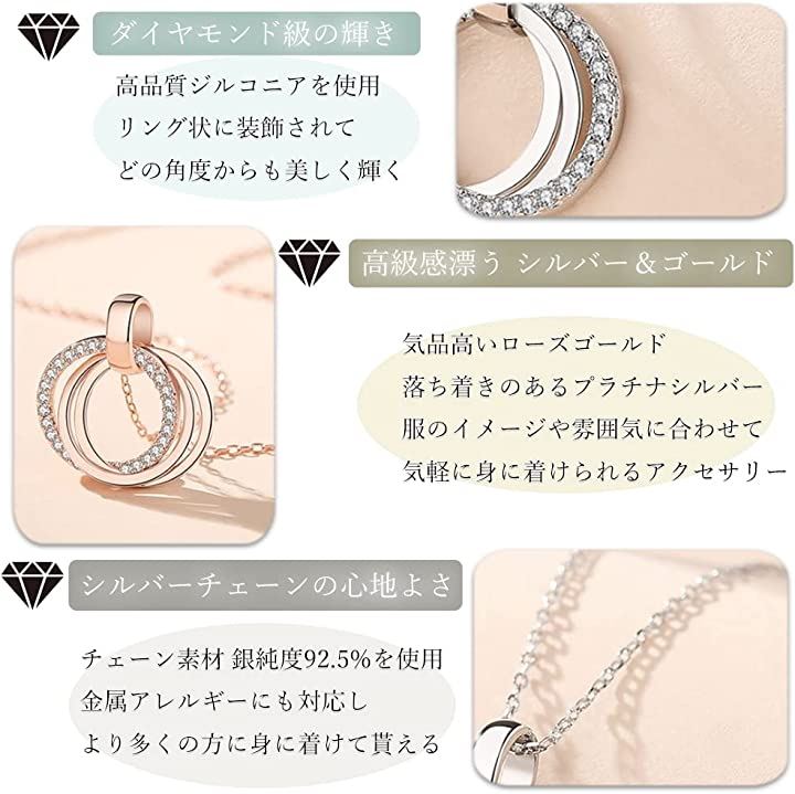 ネックレス レディース ジルコニア アクセサリー リング 金属アレルギー対応 シルバー925 ケース付き