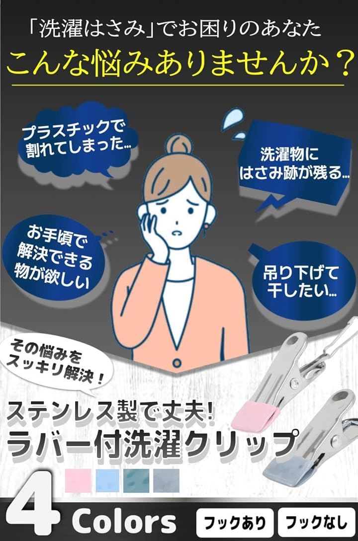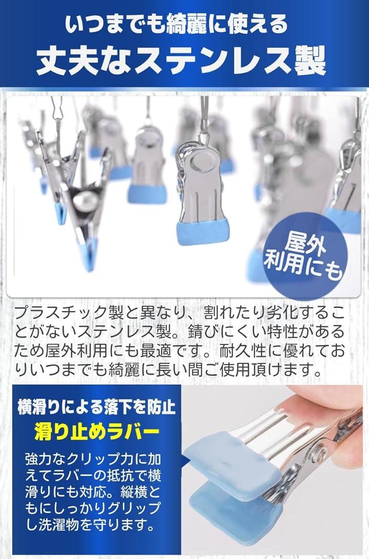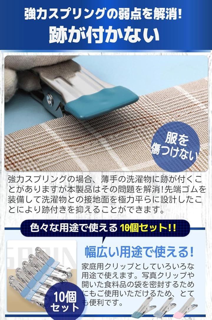 洗濯ばさみ ステンレス 滑り防止 ラバー付き ピンチハンガー 改良型 10個セット