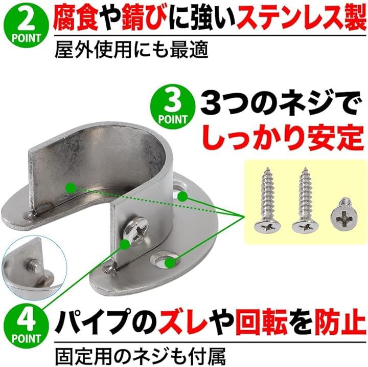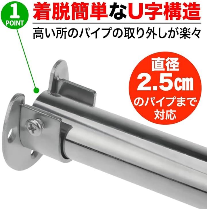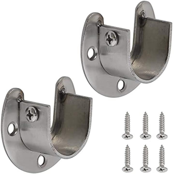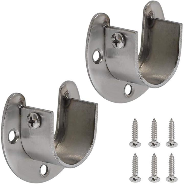 AllBright フランジソケット ロッド ポール 物干し竿 ホルダー 固定 U字型 クローゼット 2個セット