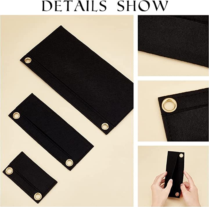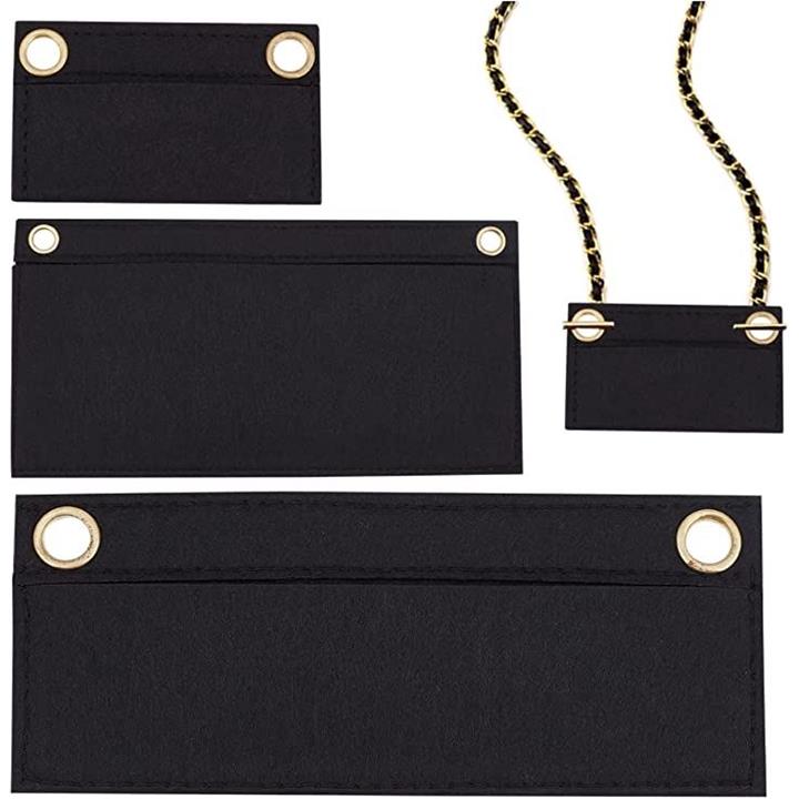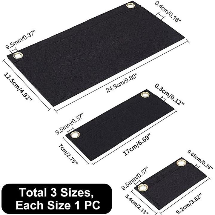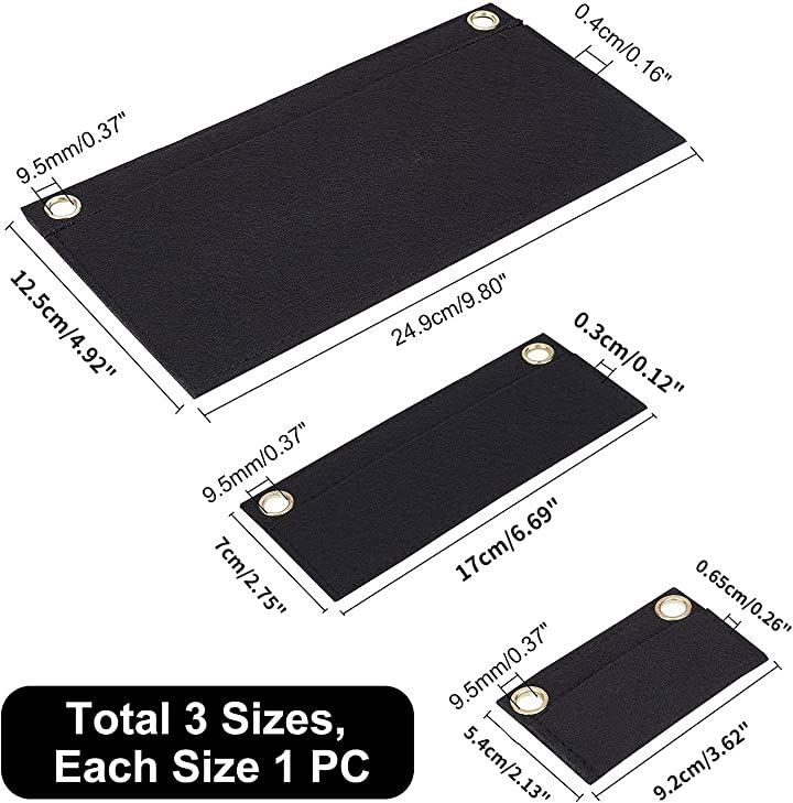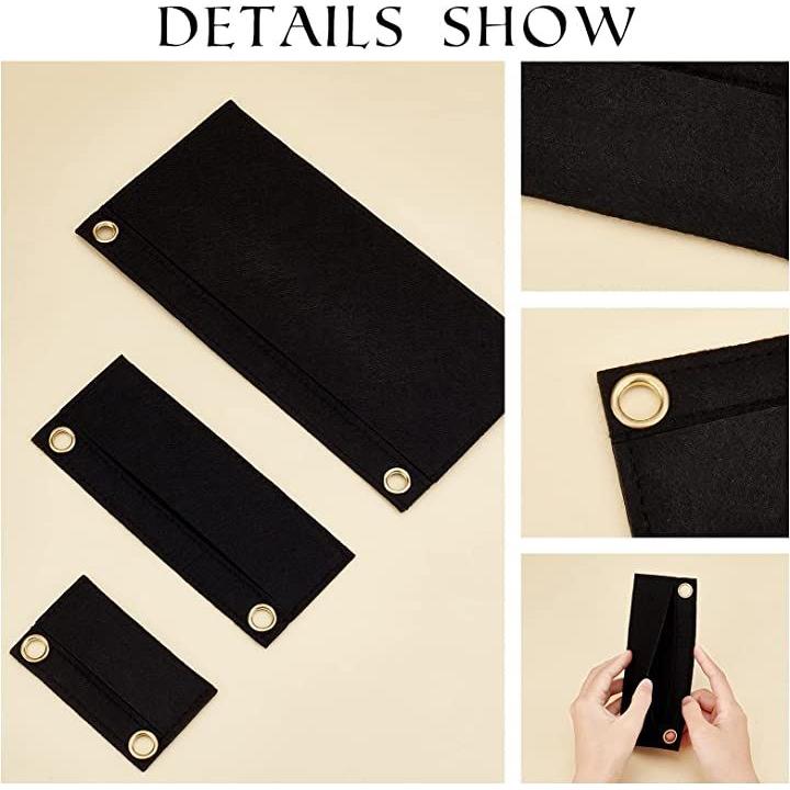 3点入り バッグインバッグ インナーバッグ 長方形 ウールフェルト財布 ショルダーバッグ ハンドバッグ 用 ポータブル 黒 収納 バッグアクセサリー