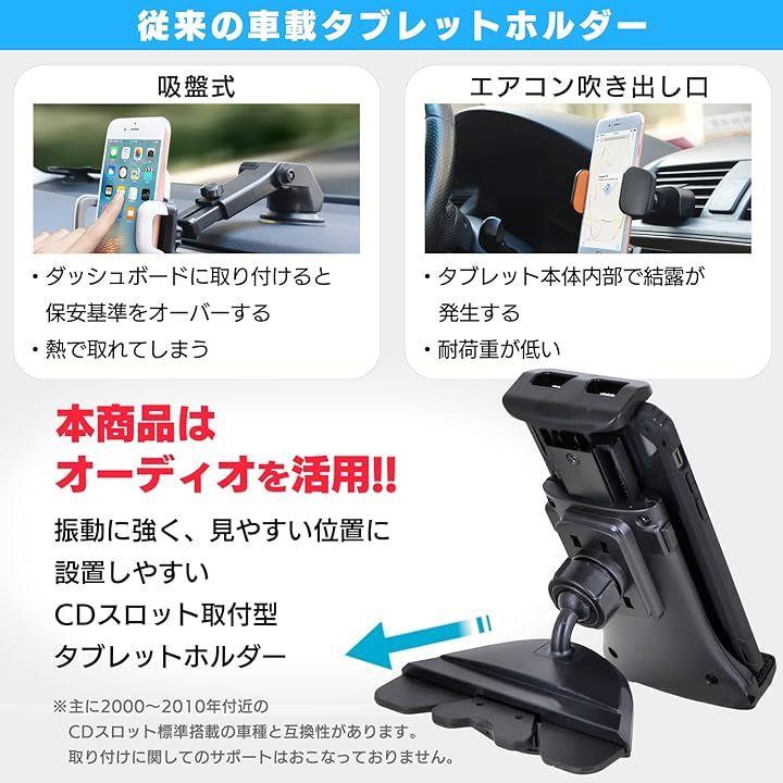 ・自動車のCDスロットに取り付けるタイプの車載ホルダーで、お使いのタブレットやスマートフォンを固定できるスタンドです。