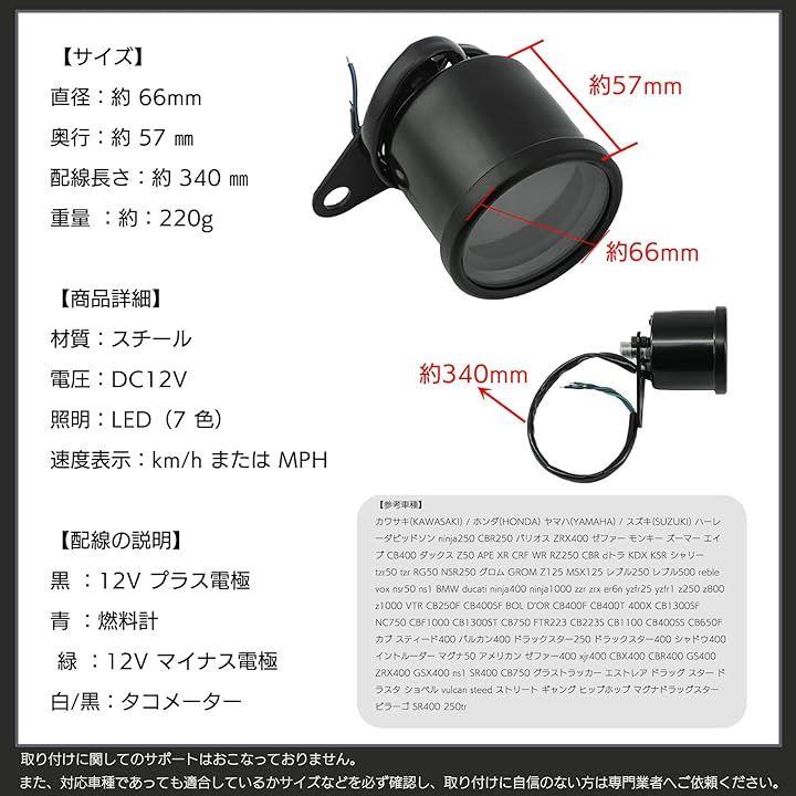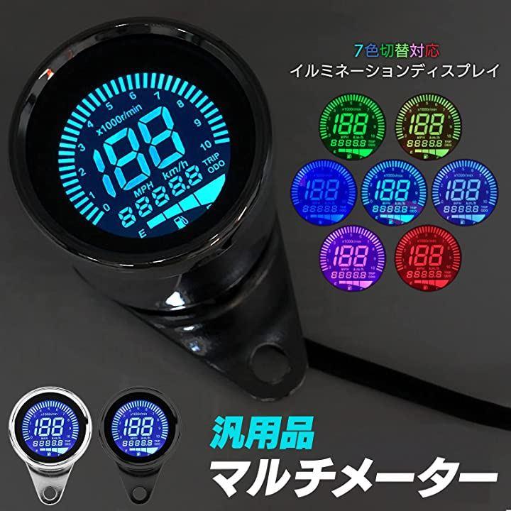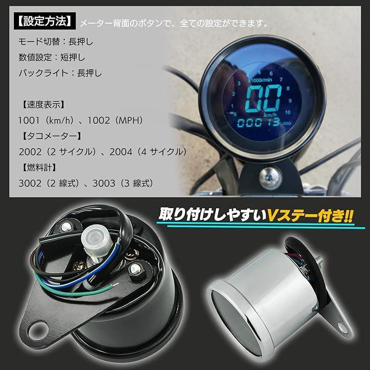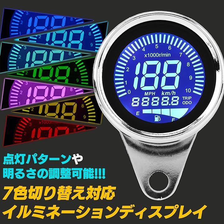 互換品 バイク用 汎用 12V 機械式 スピード タコ メーター デジタル LED バックライト ディスプレイ 燃料計 走行距離 オドメーター 4in1 一体型