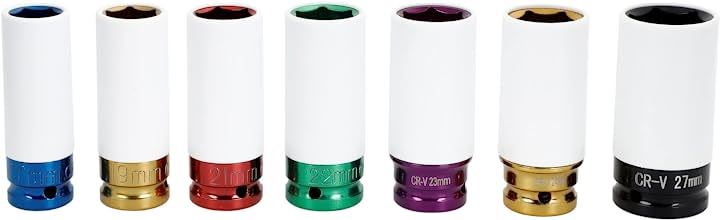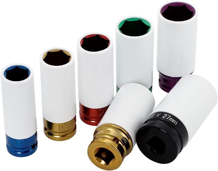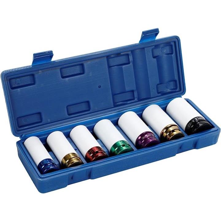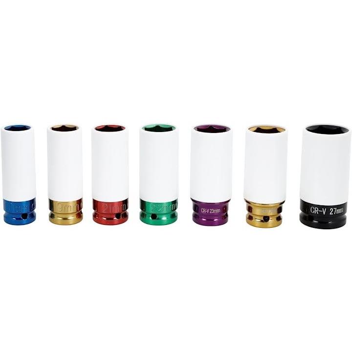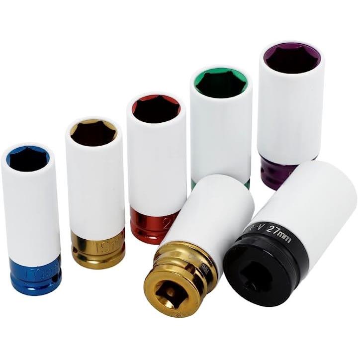 7pc インパクトレンチ アルミホイール用 ナットソケットセット 17mm 19mm 21mm 22mm 23mm 24mm 27mm 薄口 差込角 1/2インチ