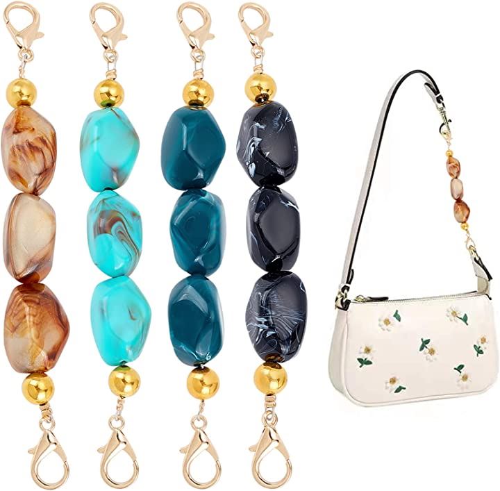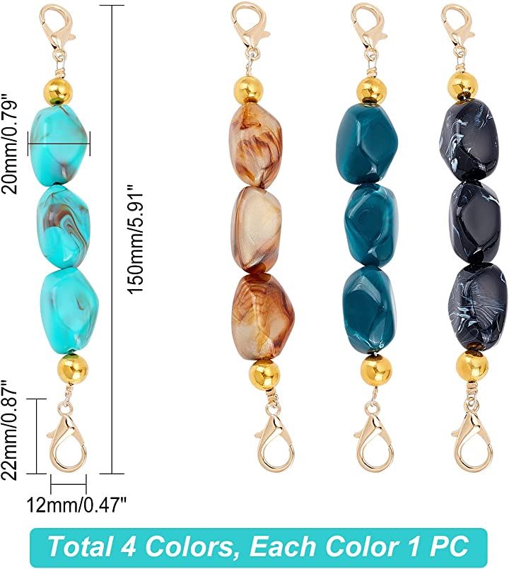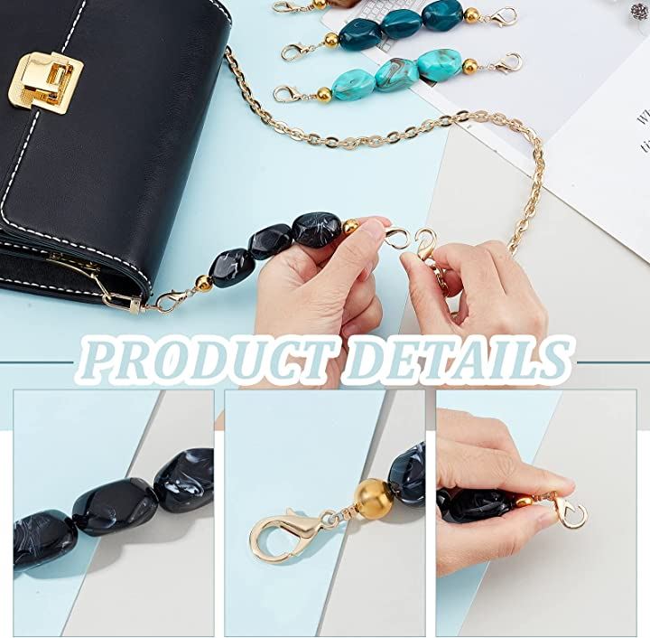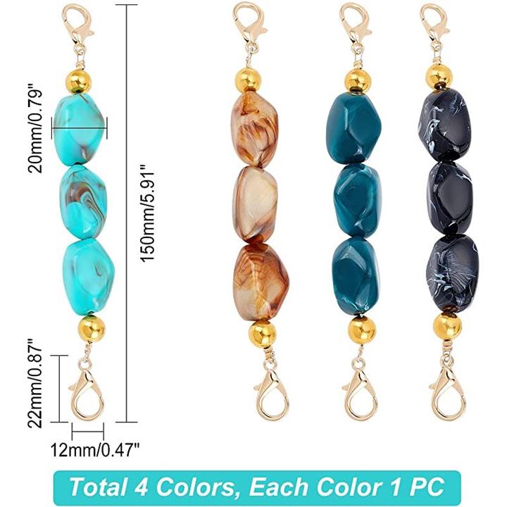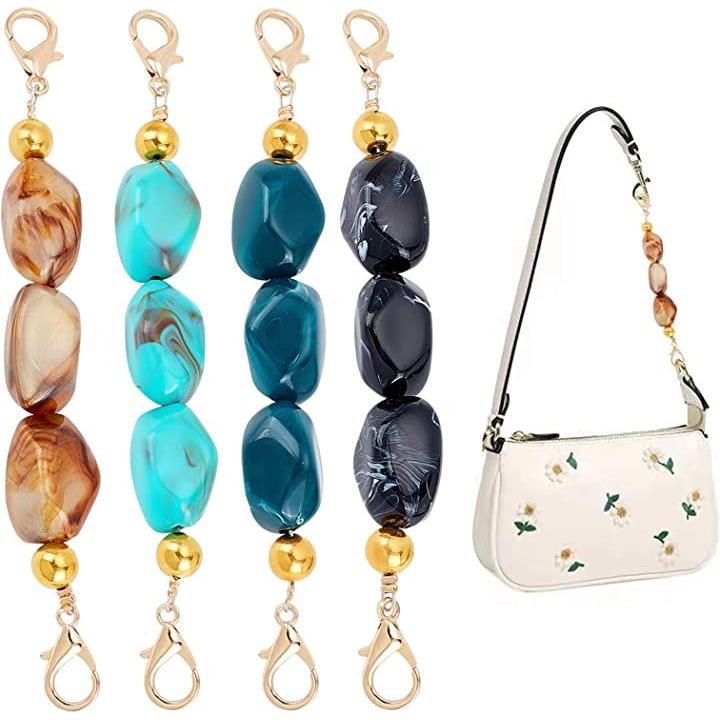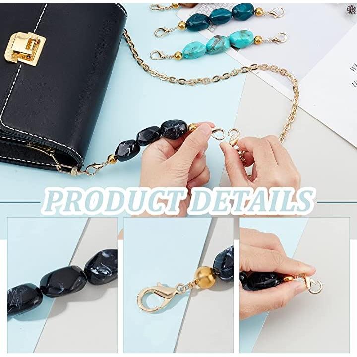 4本 アクリルチェーン 持ち手 4色 ハンドバッグチェーン 樹脂 ショートビーズ 交換用 レディースバッグ チャーム