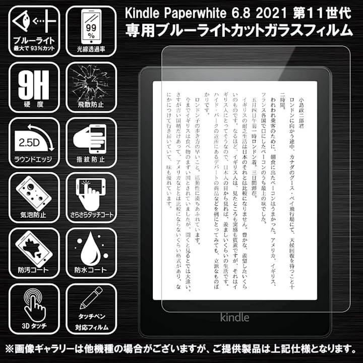 RISE ガラスフィルム ブルーライトカット 93% Kindle Paperwhite 6.8 2021 第11世代 用 保護フィルム 高透過 旭硝子 硬度9H |