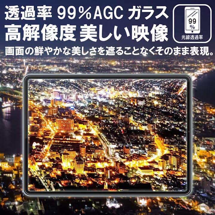 「透過率99%の美しいAGCガラス」光線透過率99%のガラスはつけていても美しい映像や画像をそのまま再現いたします。