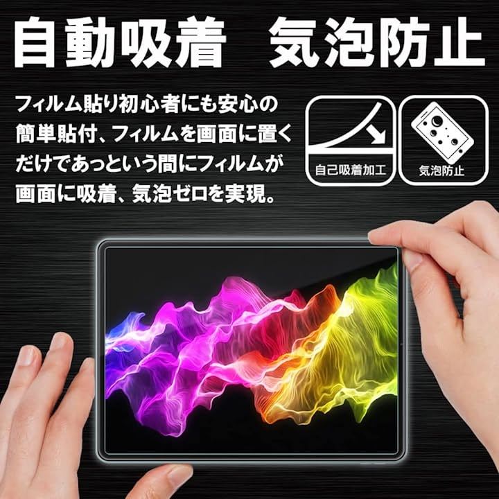 「自動吸着 気泡防止」フィルム貼り初心者の方もカンタン貼り付け、フィルムを画面に置くだけで自然に吸着、シリコンを多めに設定、気泡ができにくい仕様。