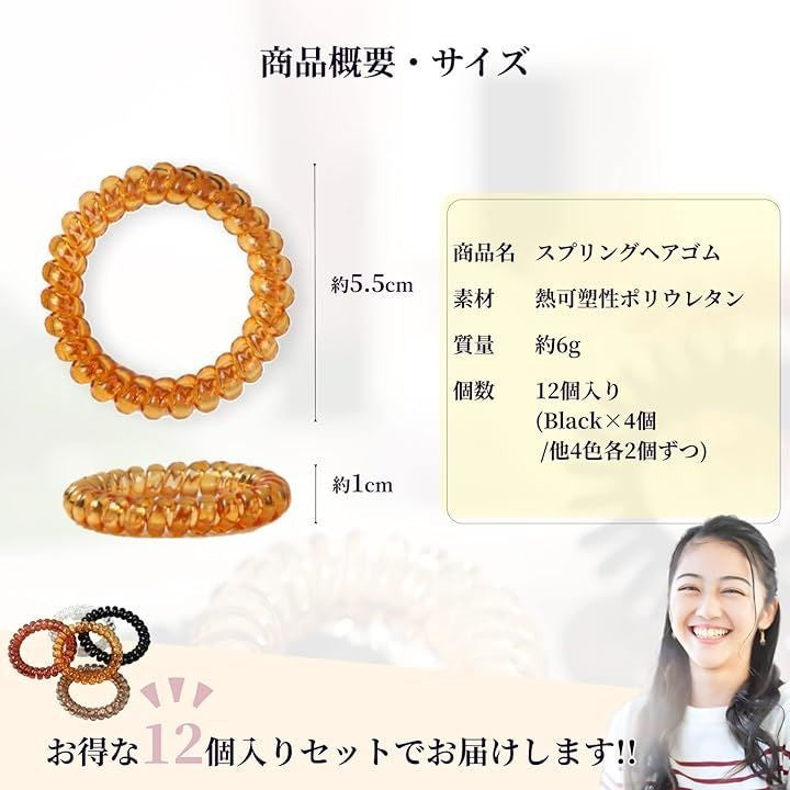スプリングヘアゴム spring hair ties 髪ゴム 跡がつかない おしゃれ 12個