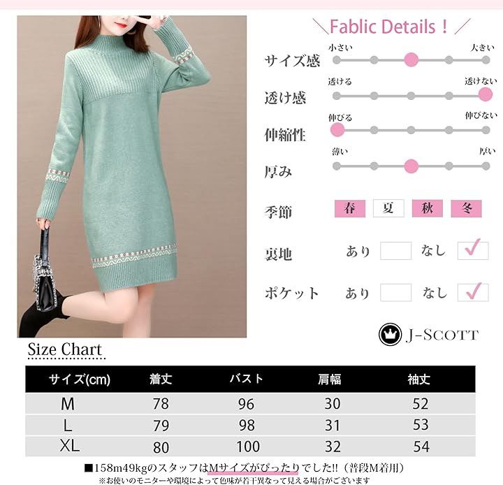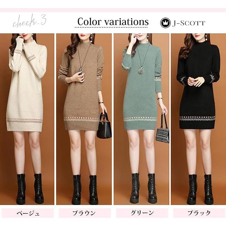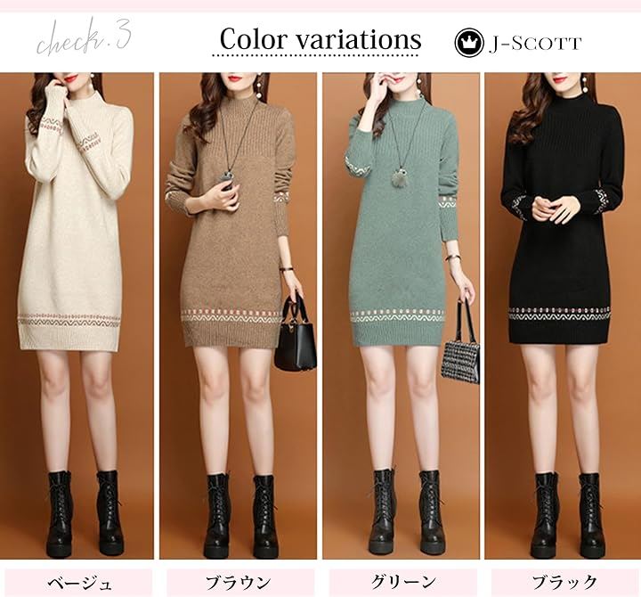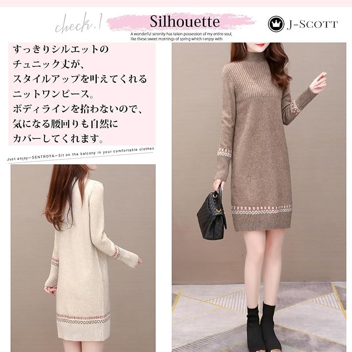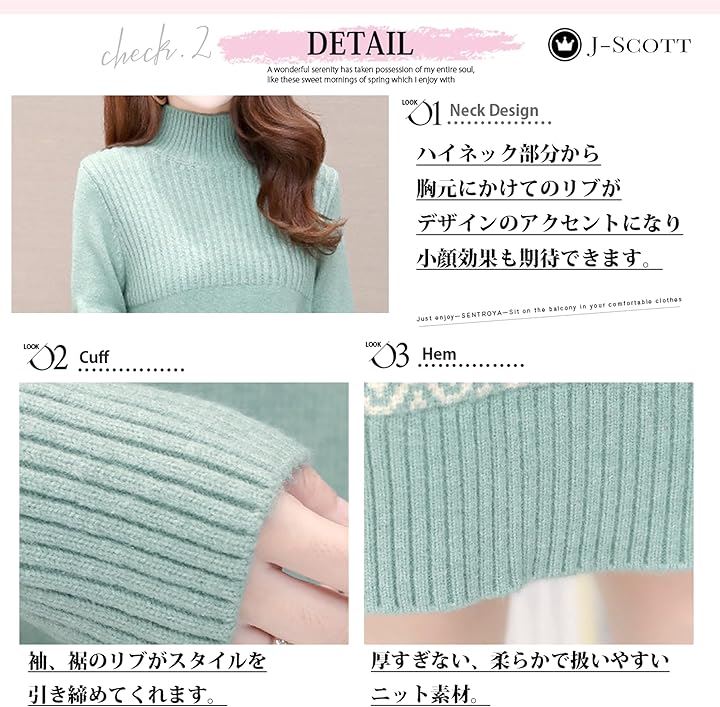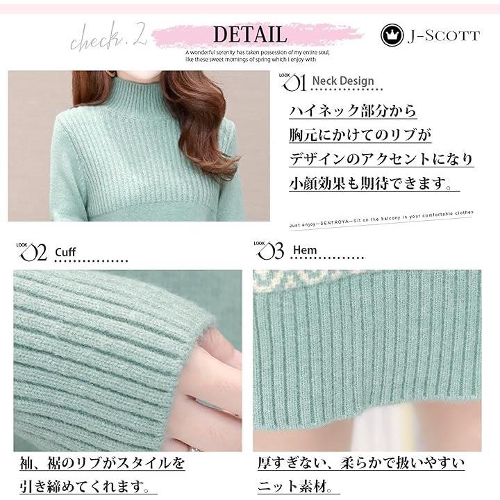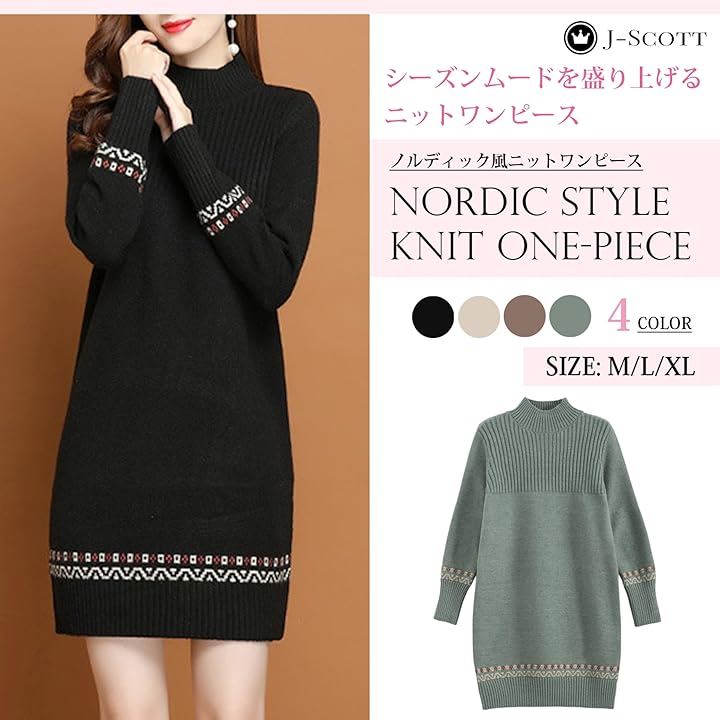 ジェイスコット ノルディック柄 ニットチュニック モックネック 北欧風 袖コンシャス ボックスチュニック