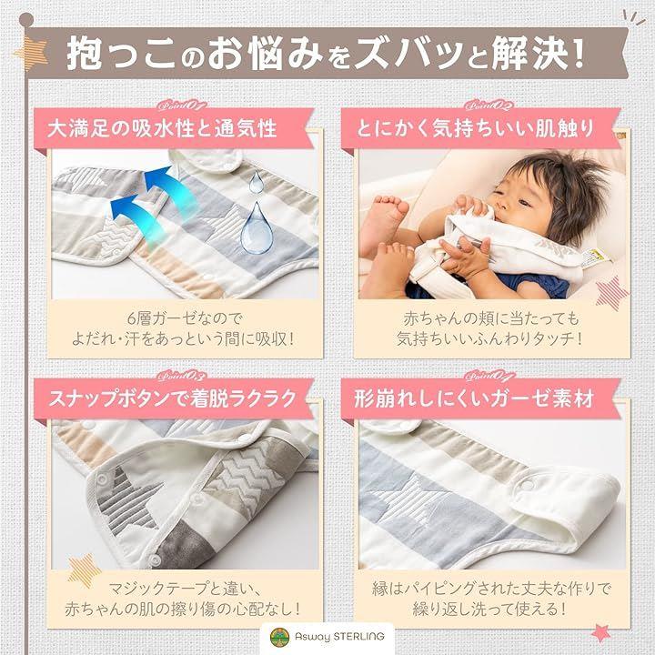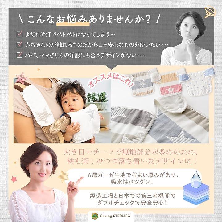 Asway STERLInG 保育のプロ推奨 抱っこ紐用よだれカバー 6重ガーゼ 綿100% |