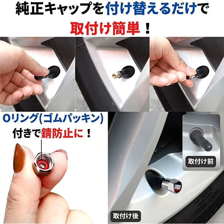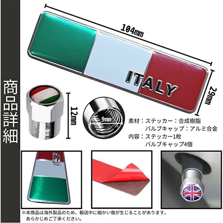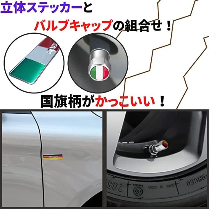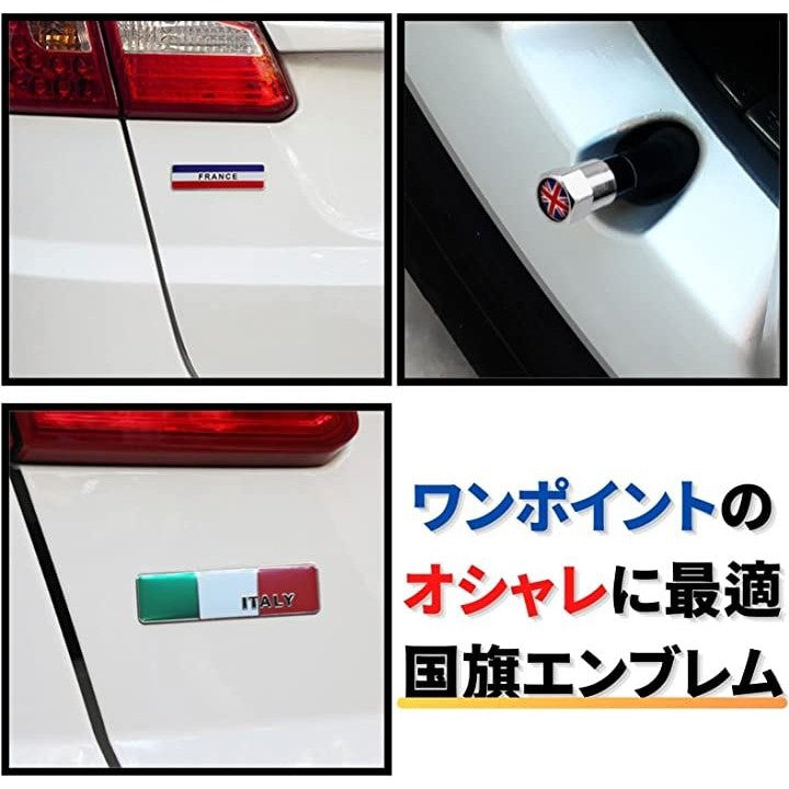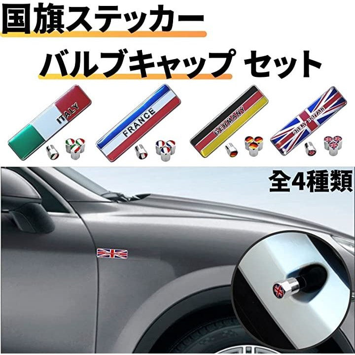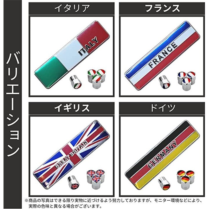 国旗 ステッカー 立体 タイヤ エア バルブ キャップ エンブレム アクセサリー ドレスアップ 汎用 アルミ 1枚 4個セット