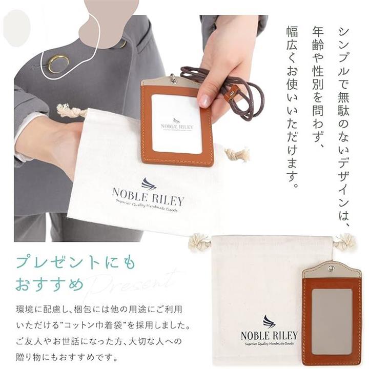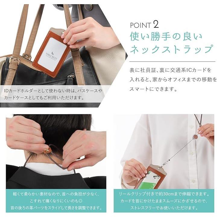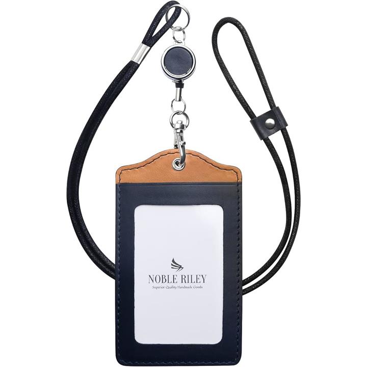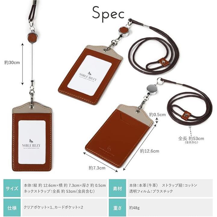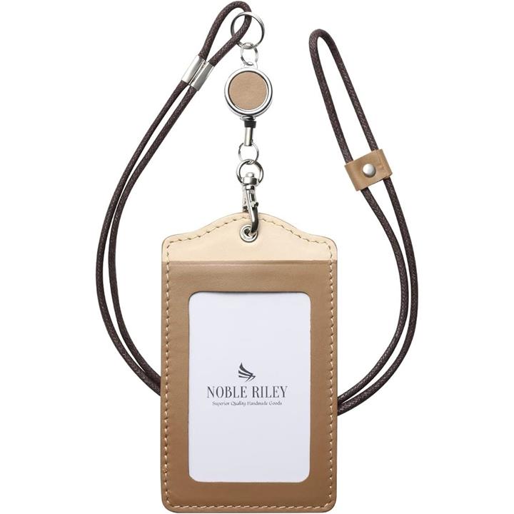 [ノーブルライリー] idカードホルダー リール 縦 本革 パスケース 社員証ケース ネームホルダー |