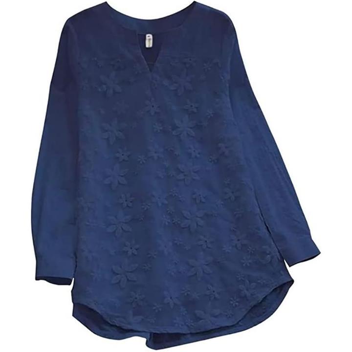 [エンプティオ] 花柄 ブラウス 長袖 レディース シフォン チュニック 襟なし エレガント トップス ユッタリ (XL) ネイビー |