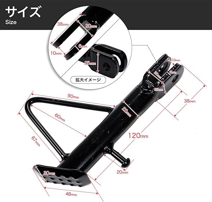 互換品ショート サイドスタンド 120mm 12cm スーパーカブ リトルカブ モンキー ダックス シャリー ローダウン シャコタン ゴリラ シャリィ CD50 CD90 Jazz マグナ Solo など 汎用