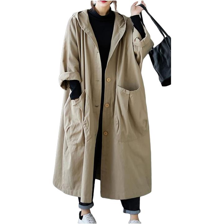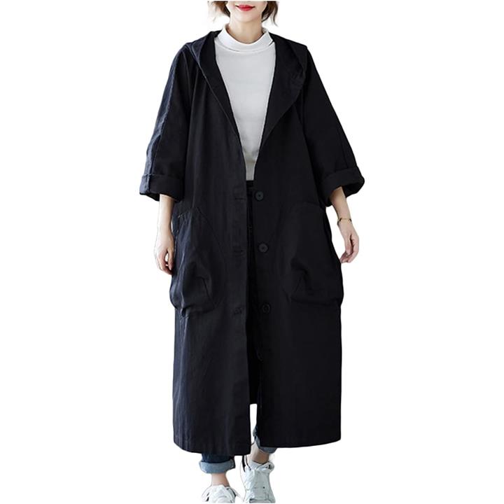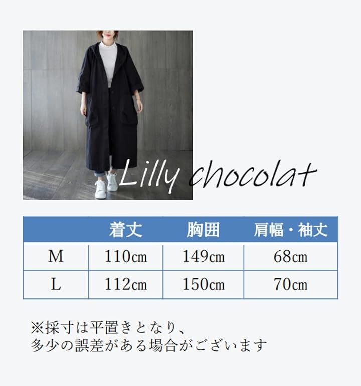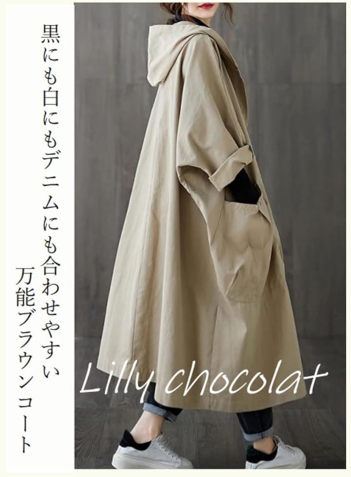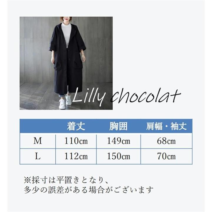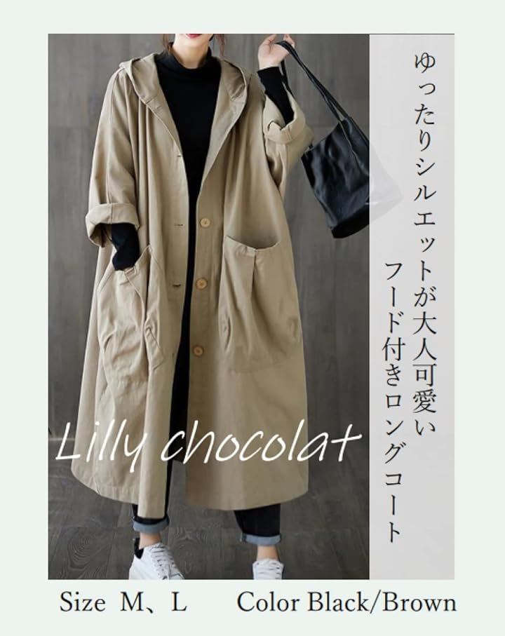 リリー ショコラ ロングコート レディース 春 カジュアル アウター 上着 羽織もの ステンカラー 薄手 ポケット ボタン フード付き シンプル 動きやすい