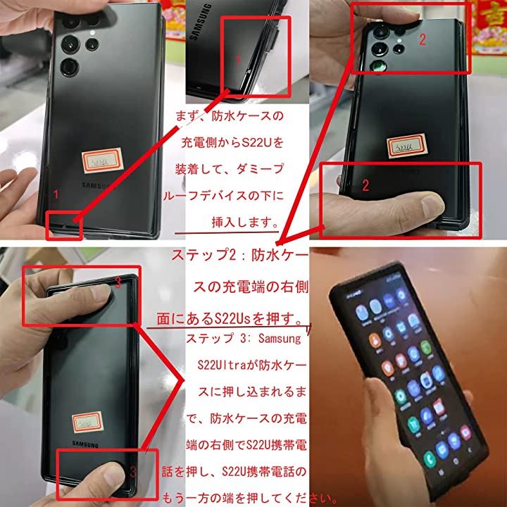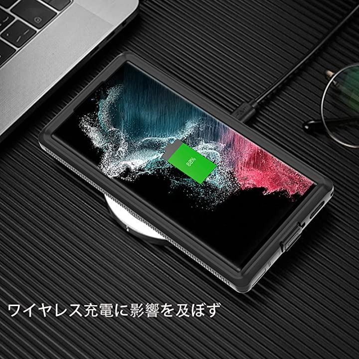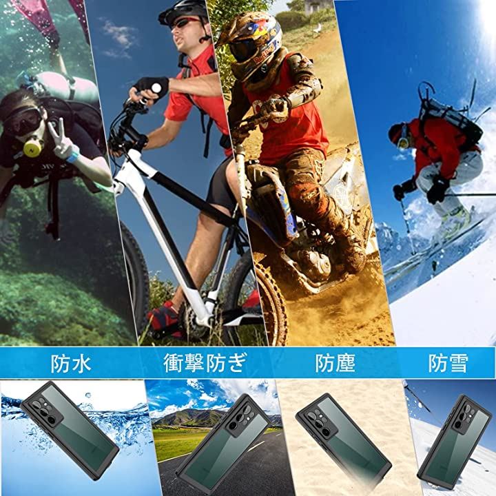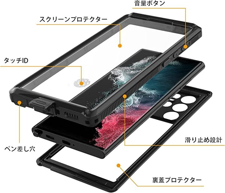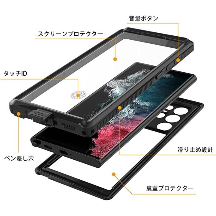 SamsungGalaxyS22Ultra スクリーンプロテクター 防水ケース フルボディ重防御 耐衝撃 防塵 落下防止 ブラック