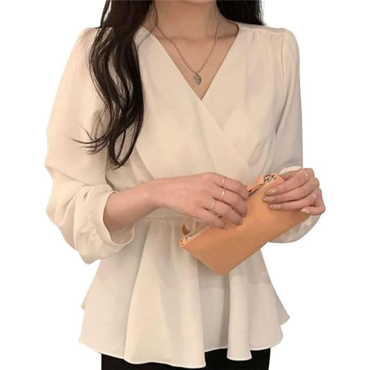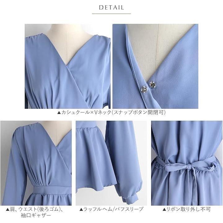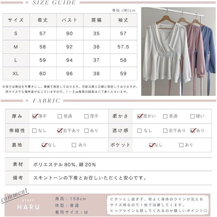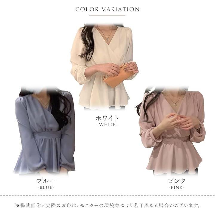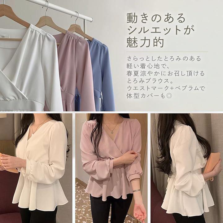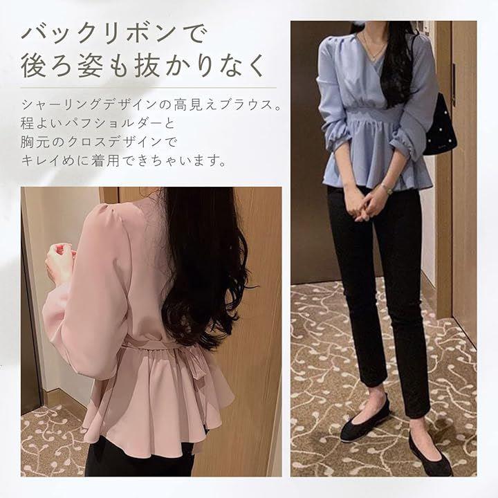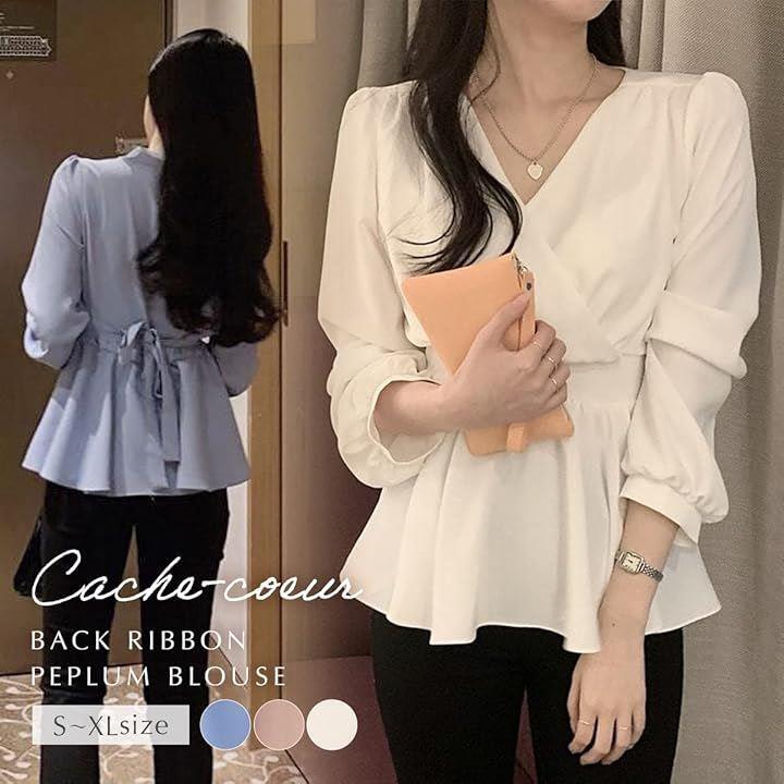[ウェアビー] カシュクール へプラム リボン ブラウス 長袖 シャツ シャーリング キレイめ レディース 薄手 トップス サラサラ ロングシャツ 高見え パフショルダー クロスデザイン バックリボン ウエストマーク 可愛い おしゃれ |