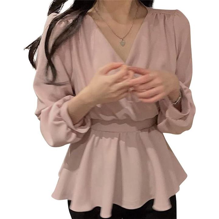 ウエストマーク+ペプラムで体型カバーできるトップス。