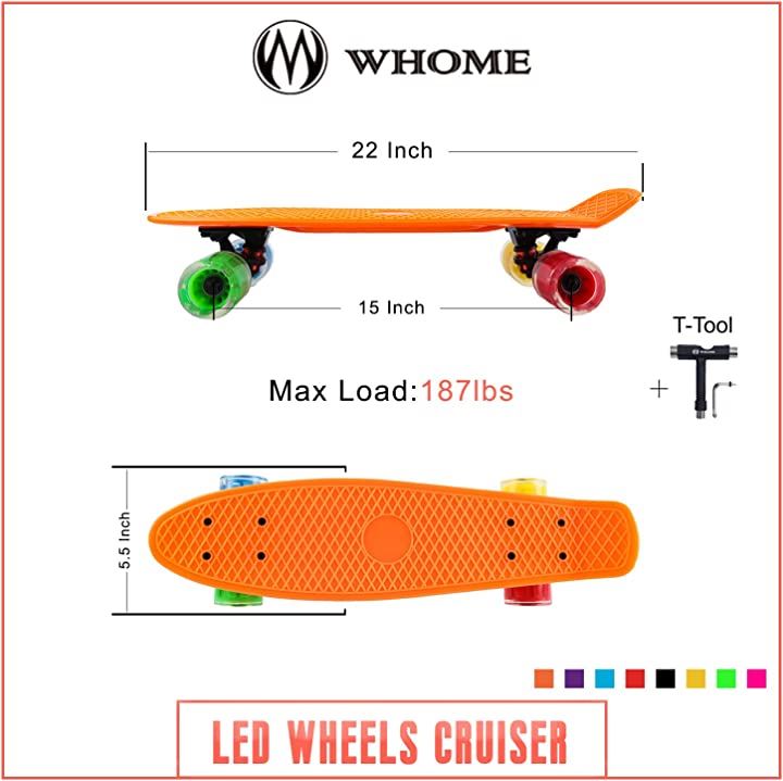 スケートボード 子供用 22インチ クルーザー スケボー 60x45mm 第5世代 LEDライト付きホイール