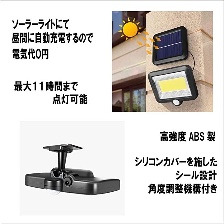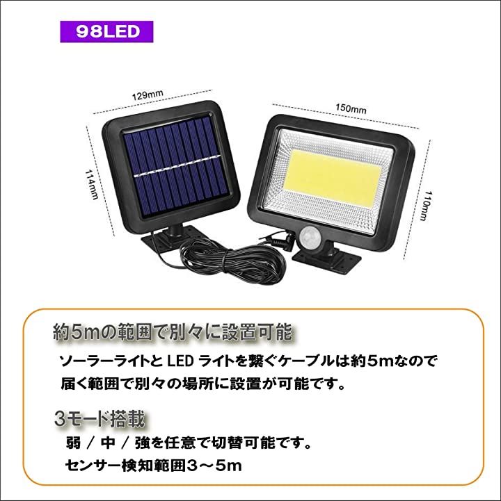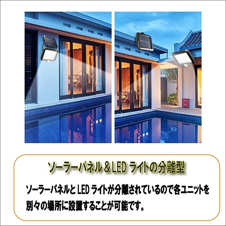 LEDライト 人感センサー 自動ON/OFF 太陽光発電/充電 ソーラーパネル 分離型 3モード搭載 屋外照明