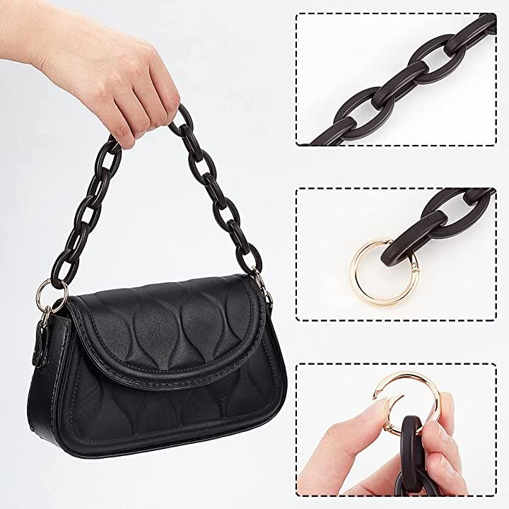 バッグ持ち手 アクリル バッグチェーン 交換用 ハンドバッグ 取っ手 ダークブラウン