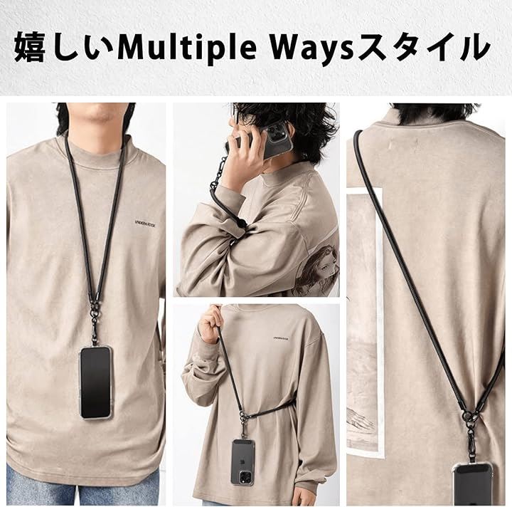 スマホショルダーストラップ 1+3枚セット 首掛け 太め 斜めがけ アウトドア 紛失/落下防止 長さ調整可能 全機種対応 Sturdy-Army green