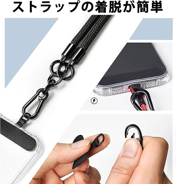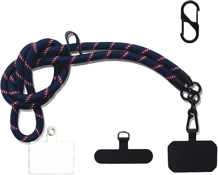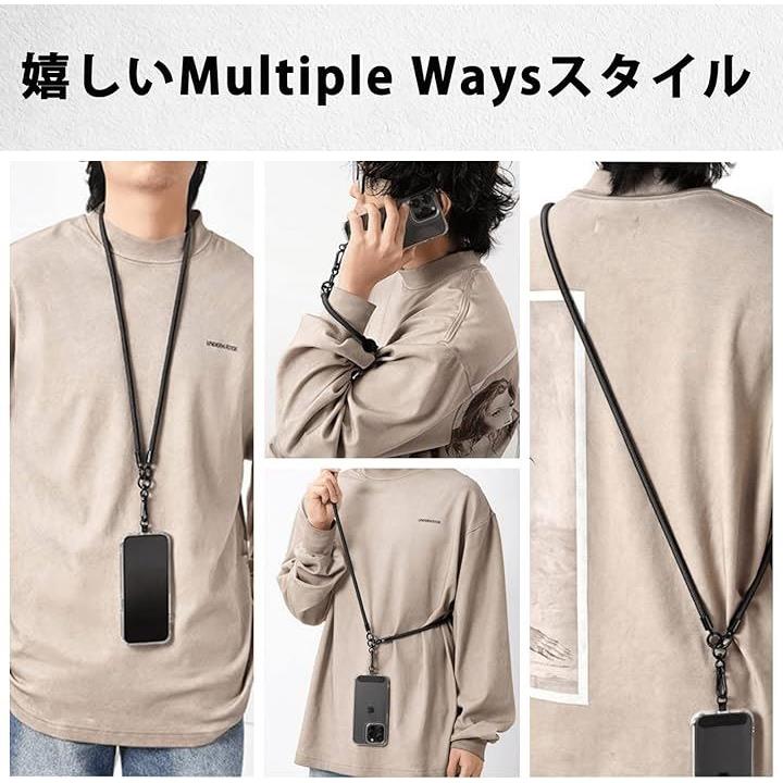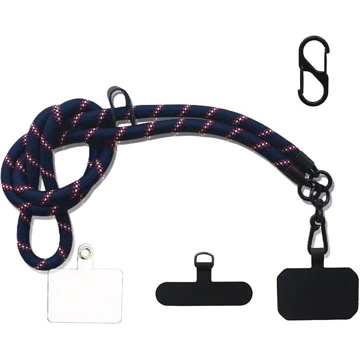 スマホショルダーストラップ 1+3枚セット 首掛け 太め 斜めがけ アウトドア 紛失/落下防止 長さ調整可能 全機種対応 Sturdy-Dark blue