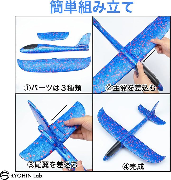 良品ラボ 飛行機 おもちゃ よく飛ぶ 手投げグライダー アウトドア 軽量 組み立て 発泡スチロール製 2個セット