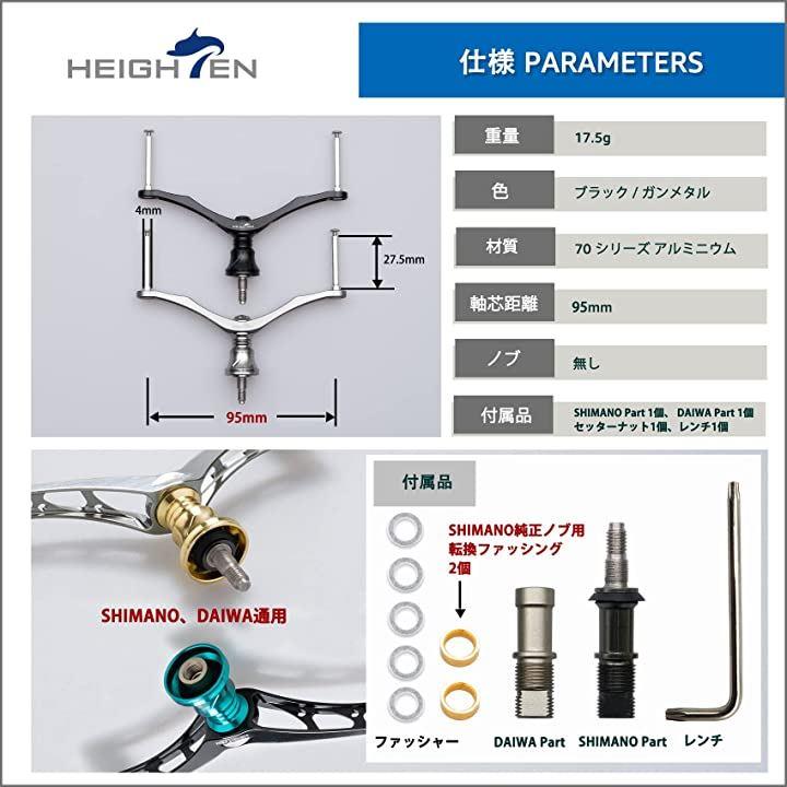HEIGHTEN 95mm リール ハンドル(ノブなし) シマノ(Shimano) ダイワ(DAIWA) 通用 スピニングリール 用 V2.0 Bridge Series (95mm, ガンメタル) (208) |