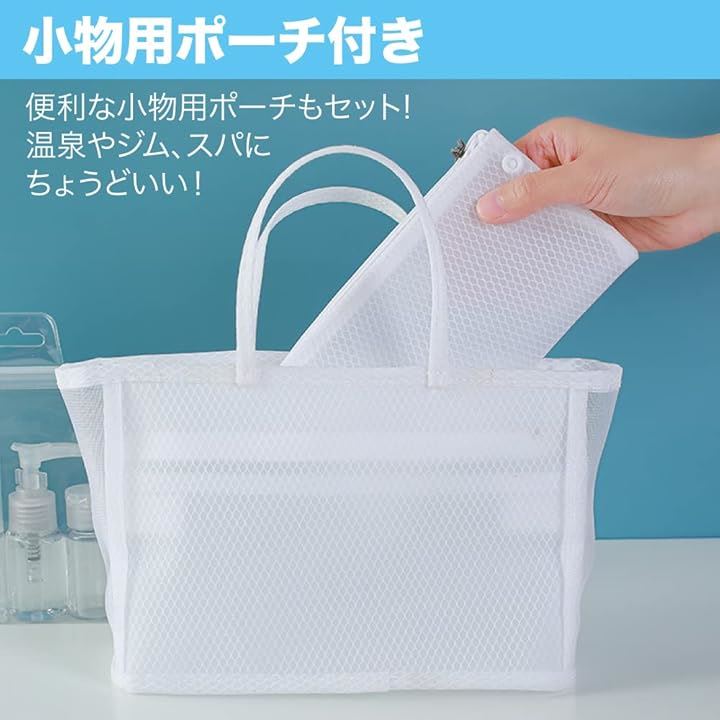 AllBright プールバッグ お風呂バッグ スパバック メッシュ スイミング 水泳 温泉 大人 ポーチ付き Bタイプ長方形