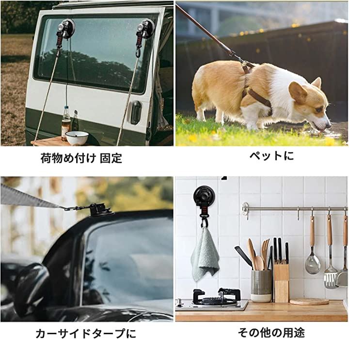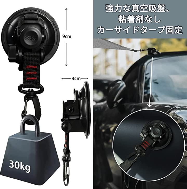 吸盤フック カーサイドタープ キャンプ タープ用 車 連結 テント
