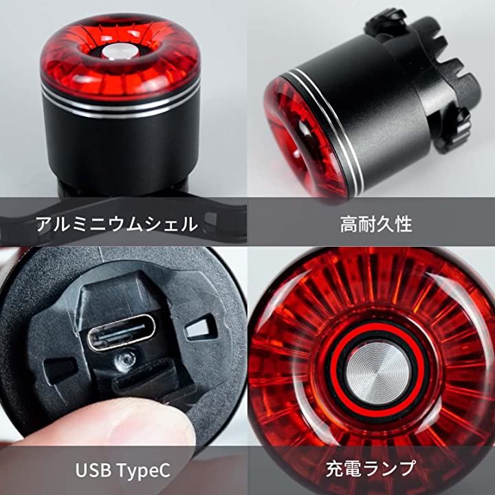 roseddy テールライト 自転車 リアライト USB Type-C 充電式 高輝度 バイク テールランプ IPX6 アルミニウム合金製 |