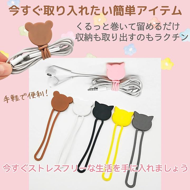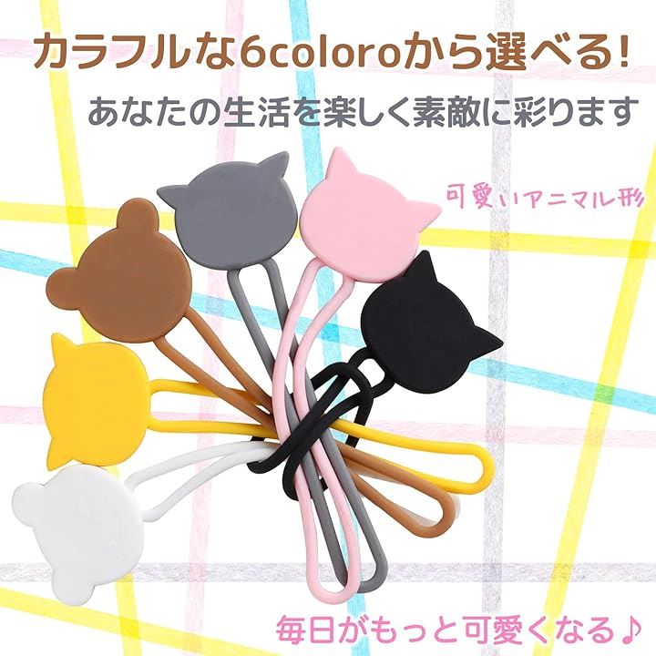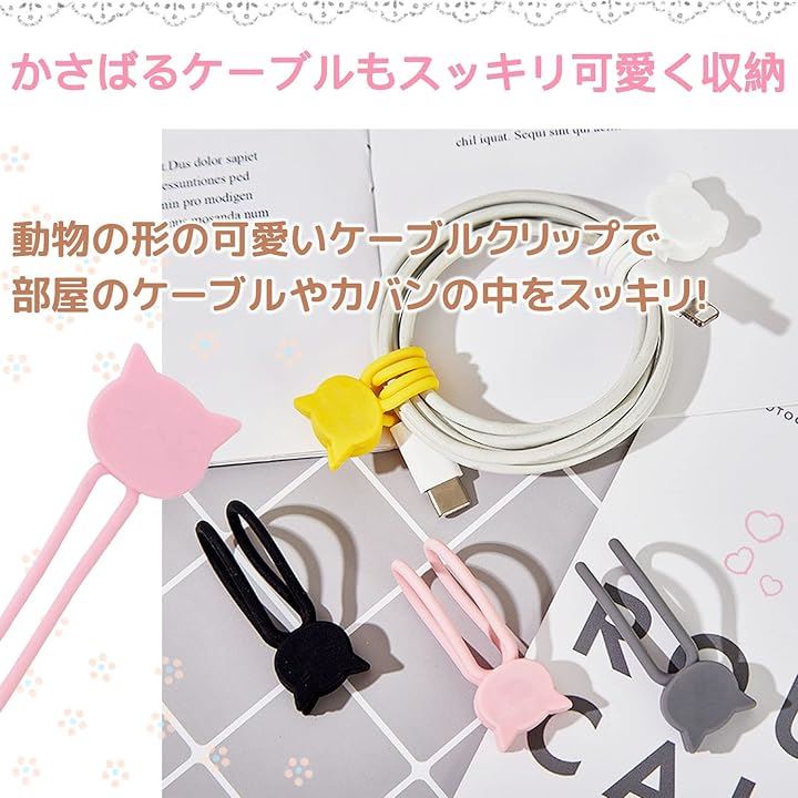 アニマルの可愛いケーブルクリップ 動物 キャラクター 持ち運び デスク PCケーブル スマホ 充電 USB