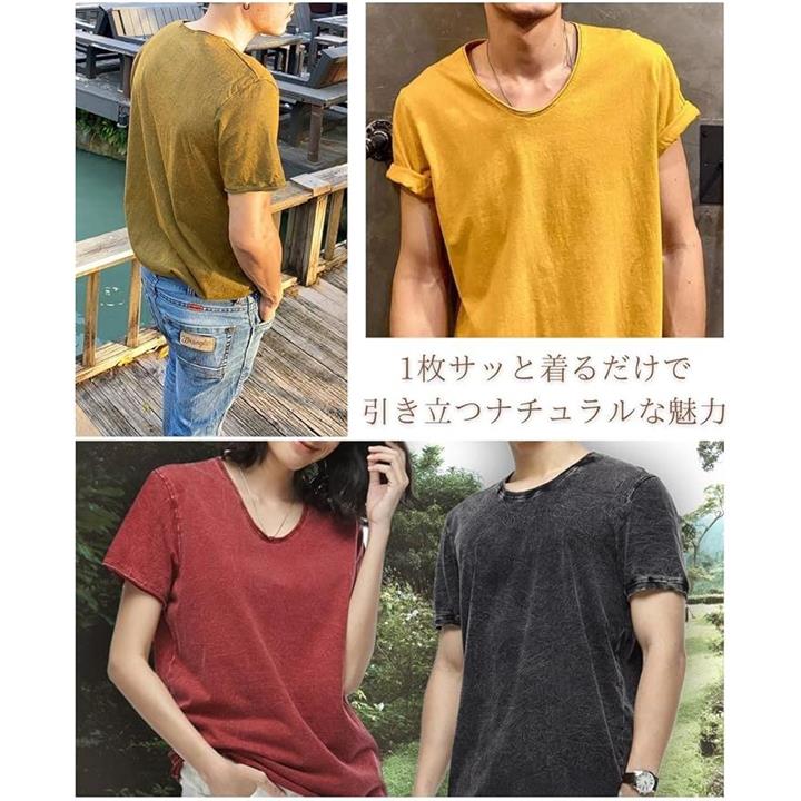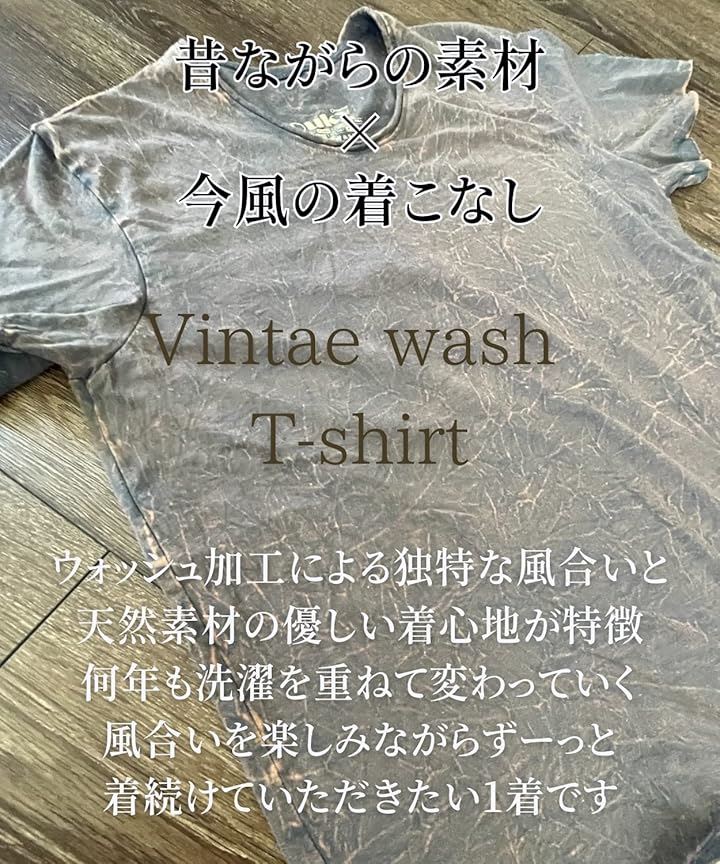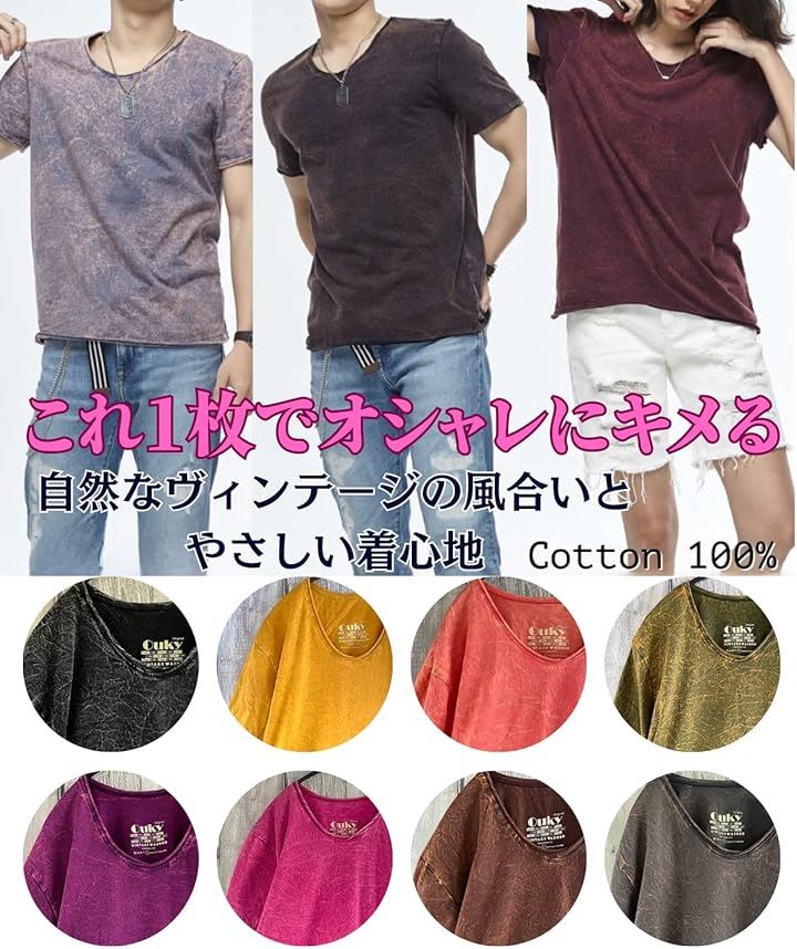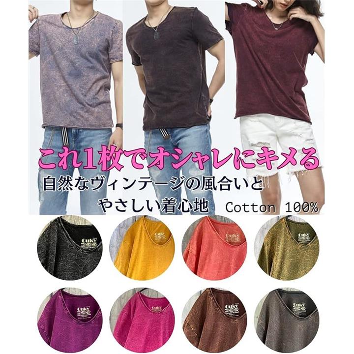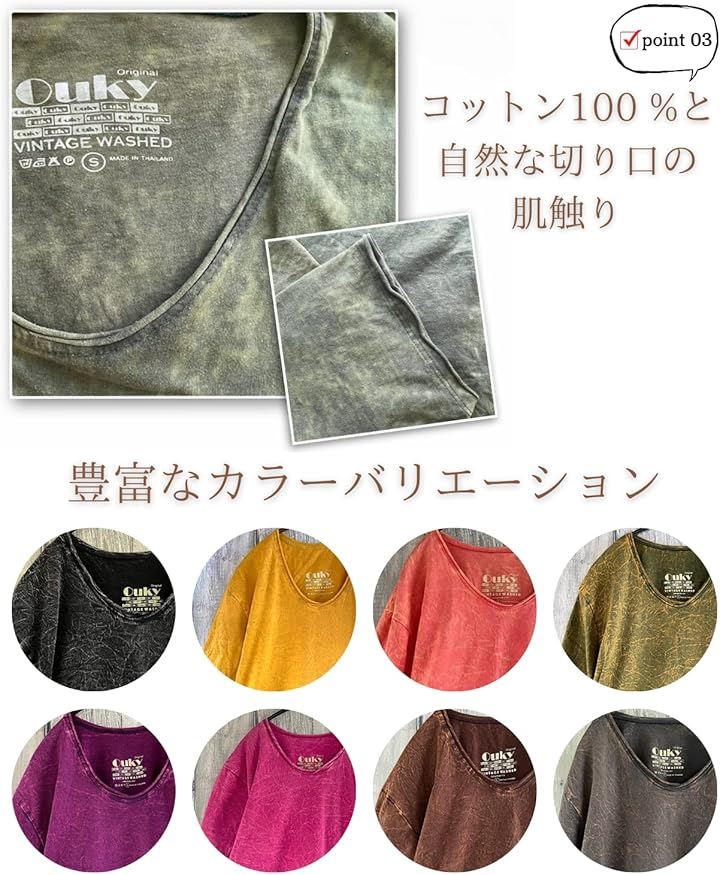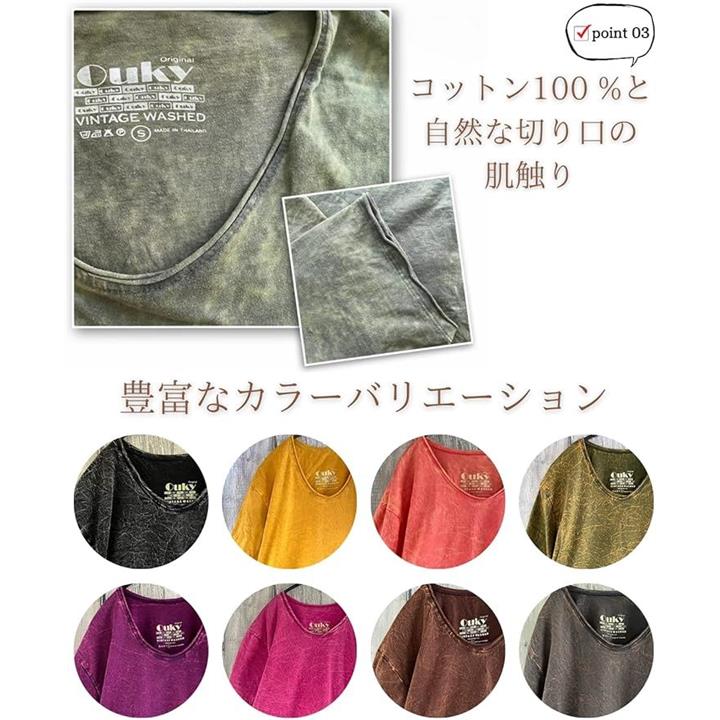綿100% 手染め ビンテージウォッシュ Tシャツ おしゃれ 半袖 古着風 アジアン エスニック 無地
