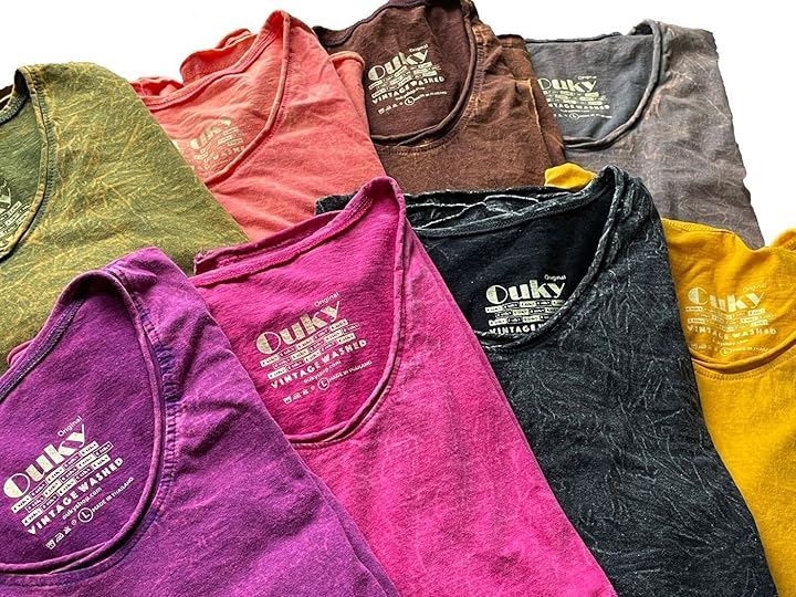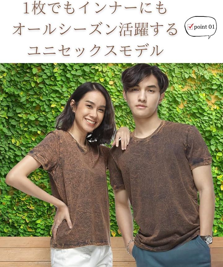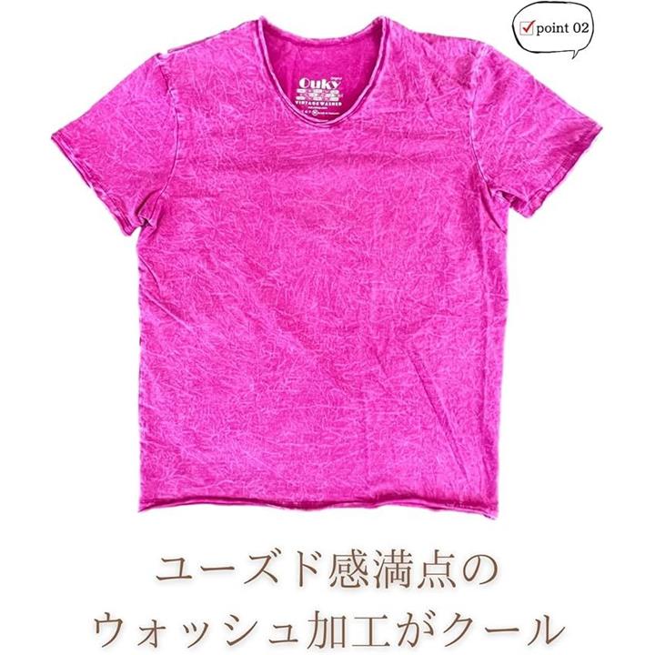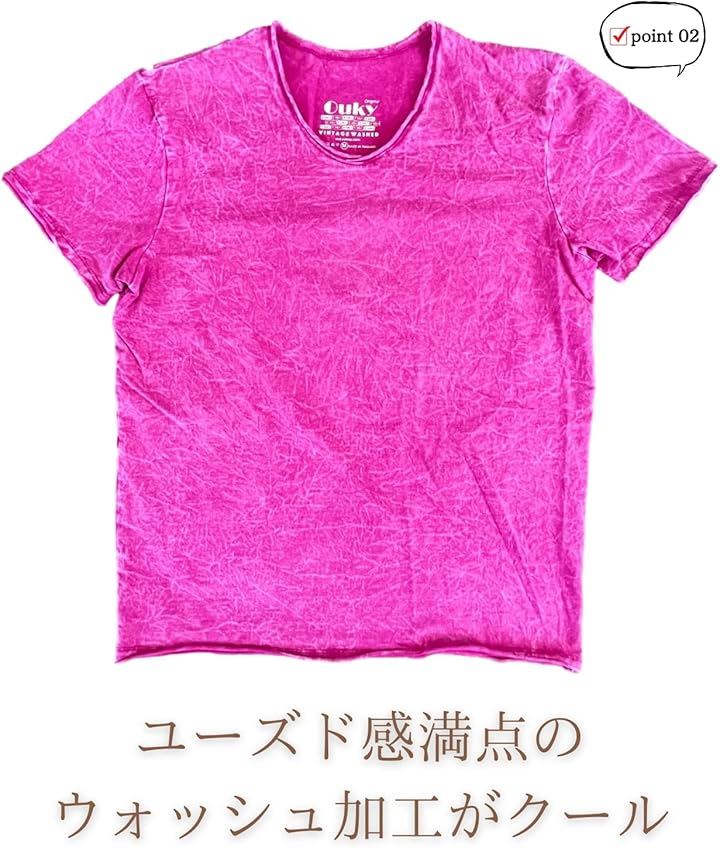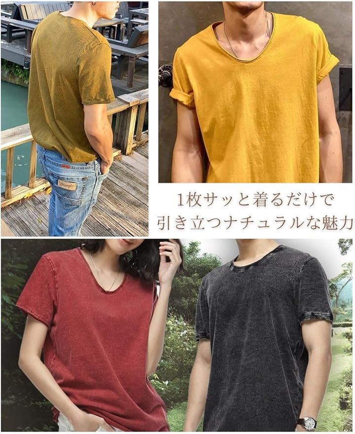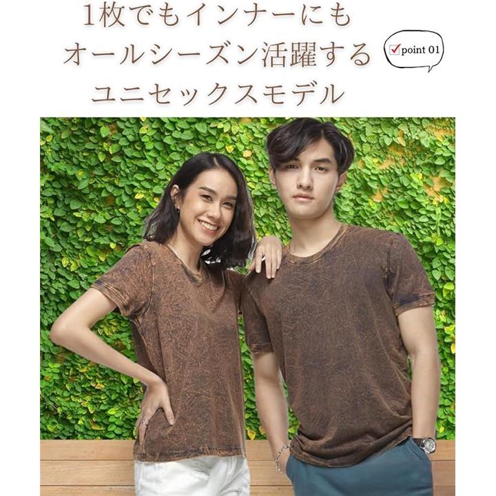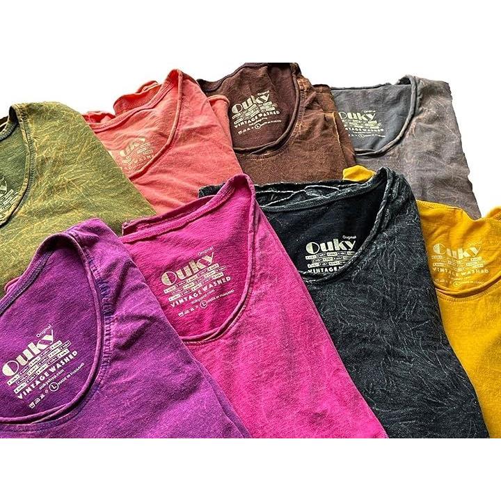 綿100% 手染め ビンテージウォッシュ Tシャツ おしゃれ 半袖 古着風 アジアン エスニック 無地