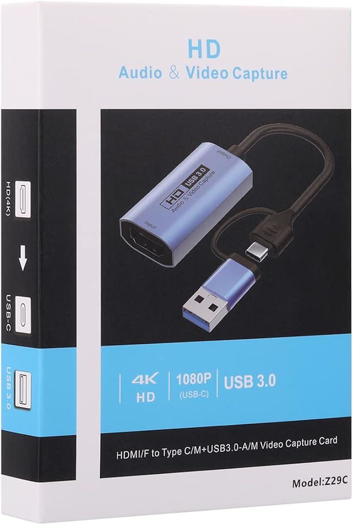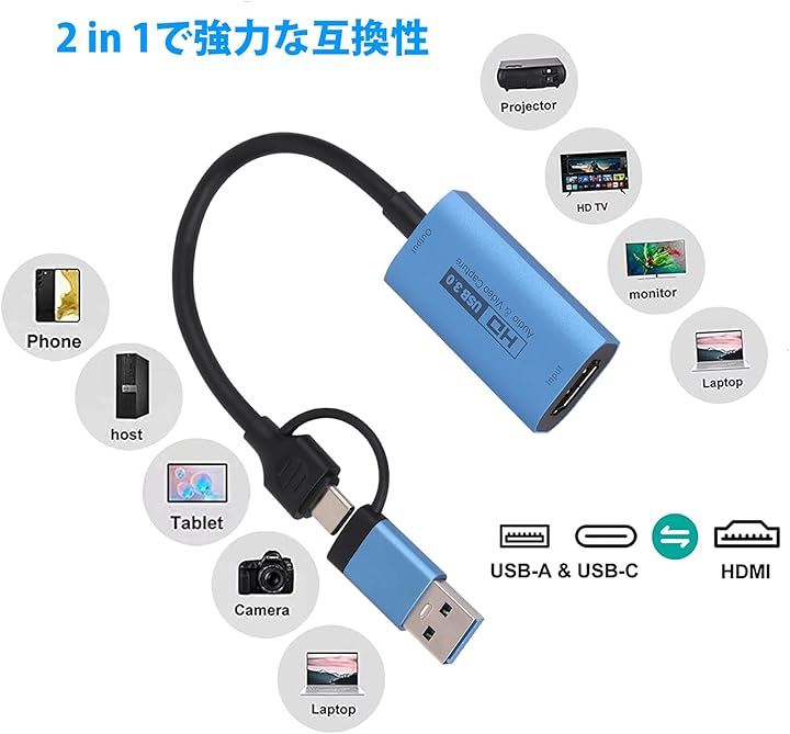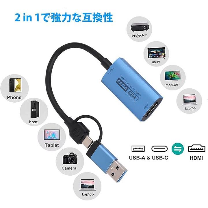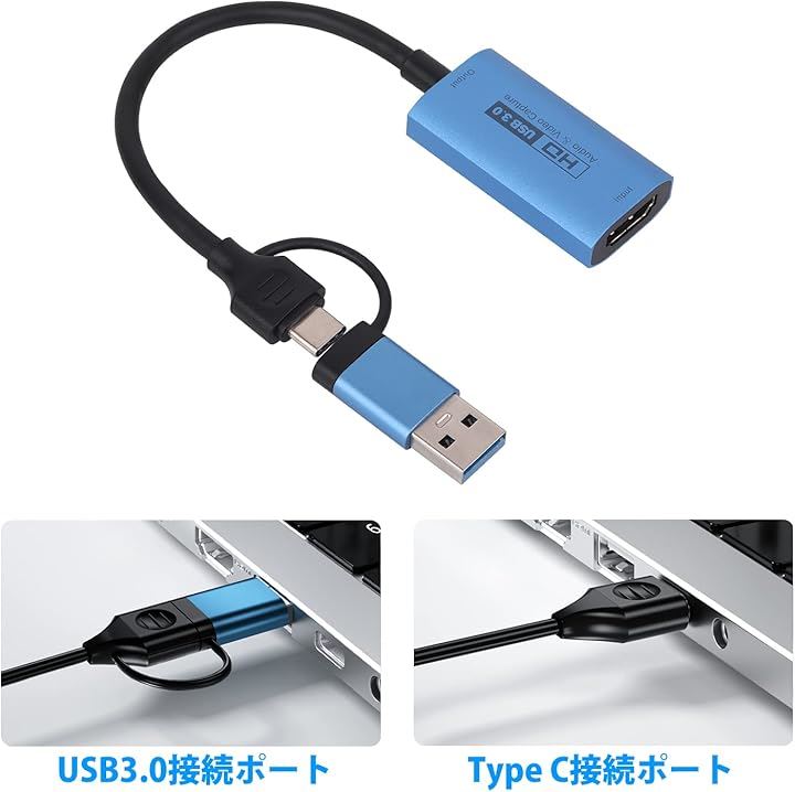 互換品 HDMIキャプチャーカード USB3.0 & Type C 2 in 1 4K 60fps ビデオキャプチャカード 変換 Windows/Linux/Mac OS X/PS4/Xbox One/Nintendo Switch/Wii U/OBS Studio対応 電源不要