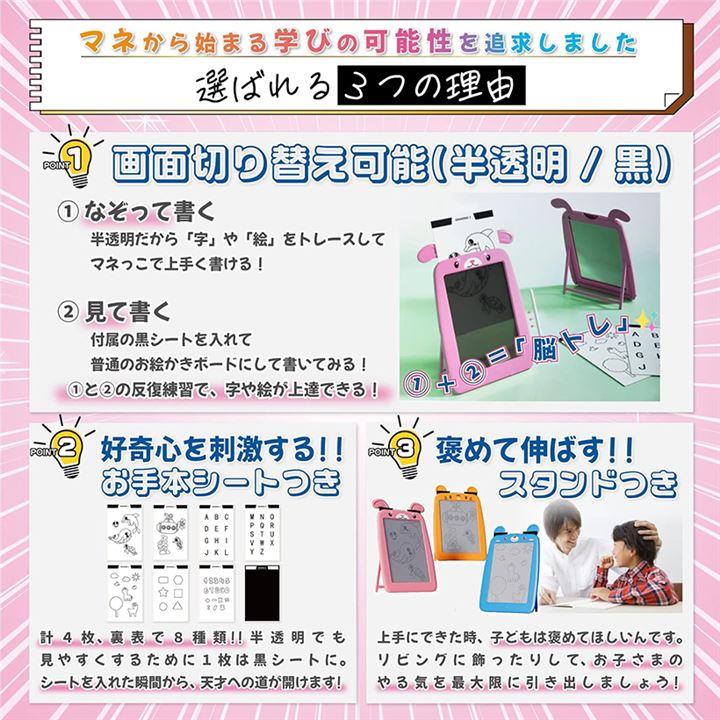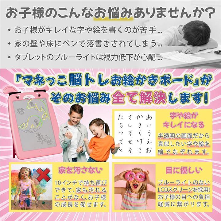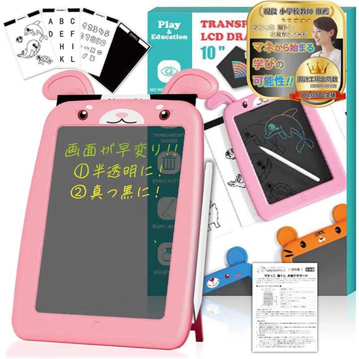 半透明 おえかきボード 電子メモパッド お絵描きボード ひらがな 練習 電子パッド デジタルメモ おえかきトレーサー スタンドつき 10インチ ピンク うさぎ